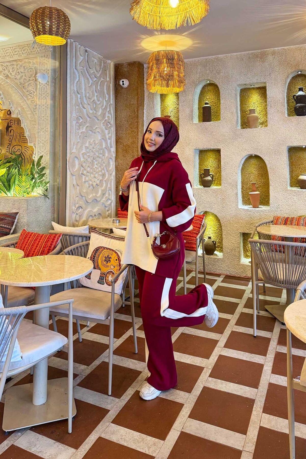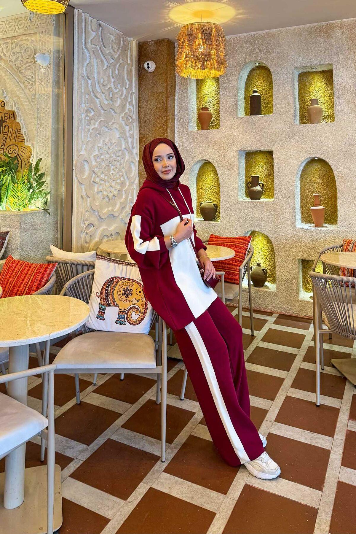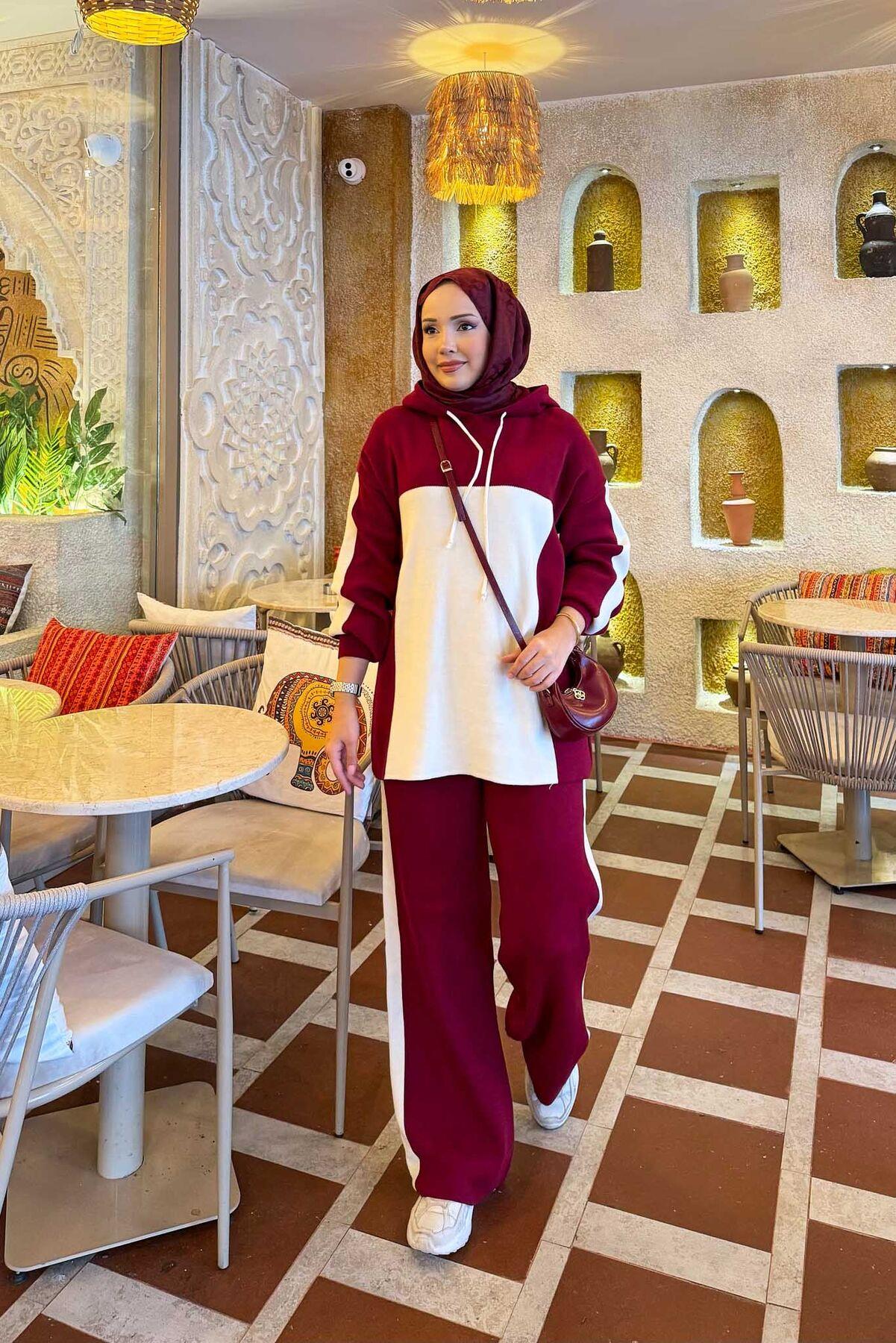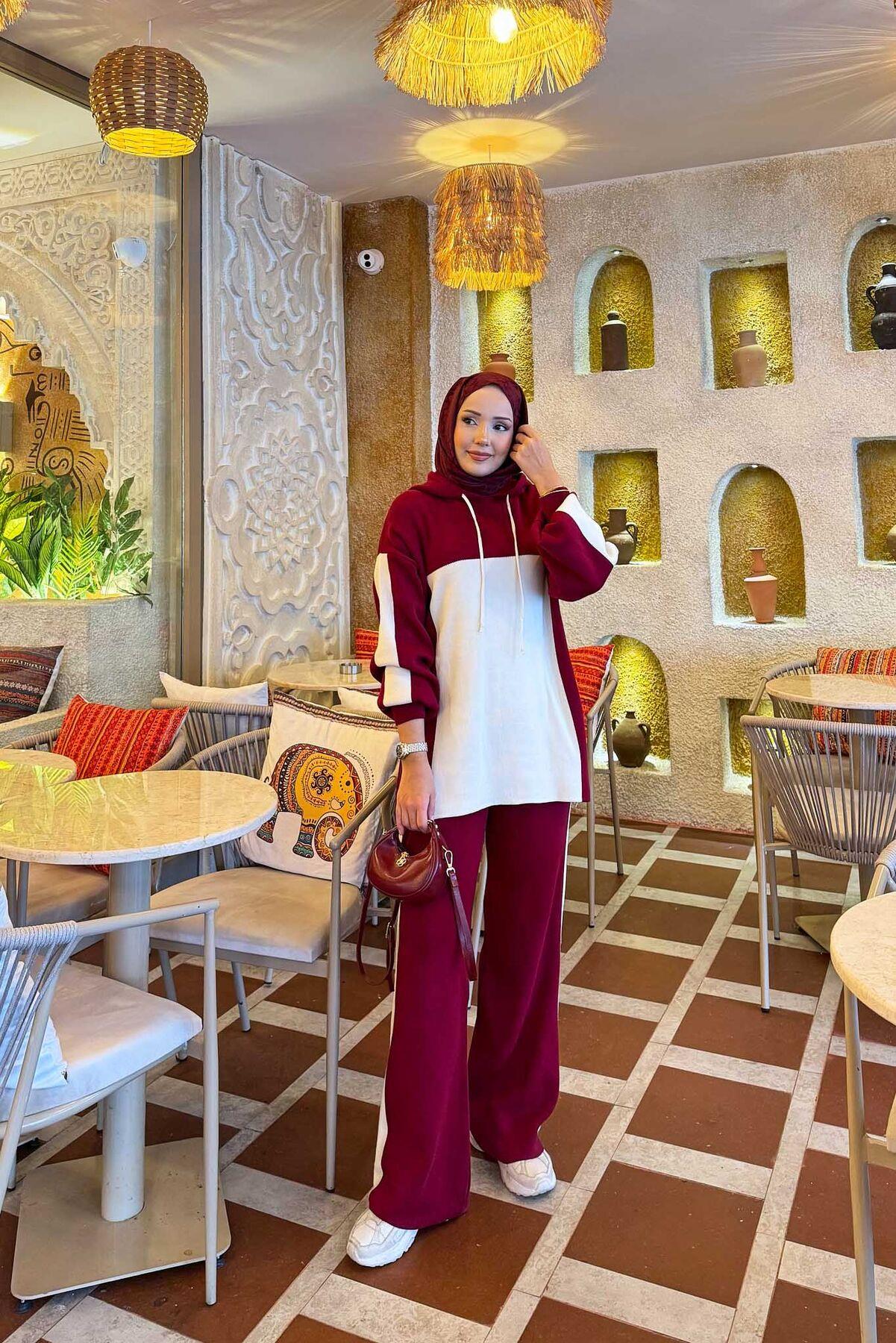 Hooded Two-Tone Knitwear Set, Burgundy (125M00612144R08STD)