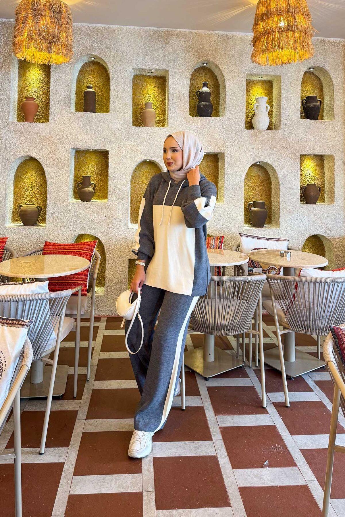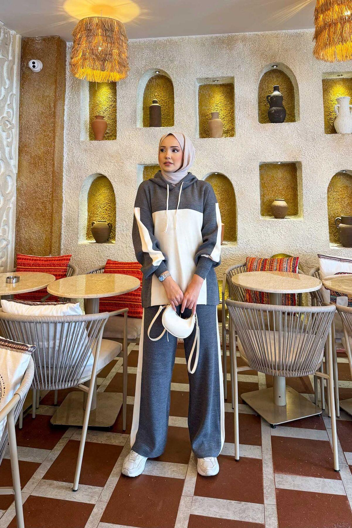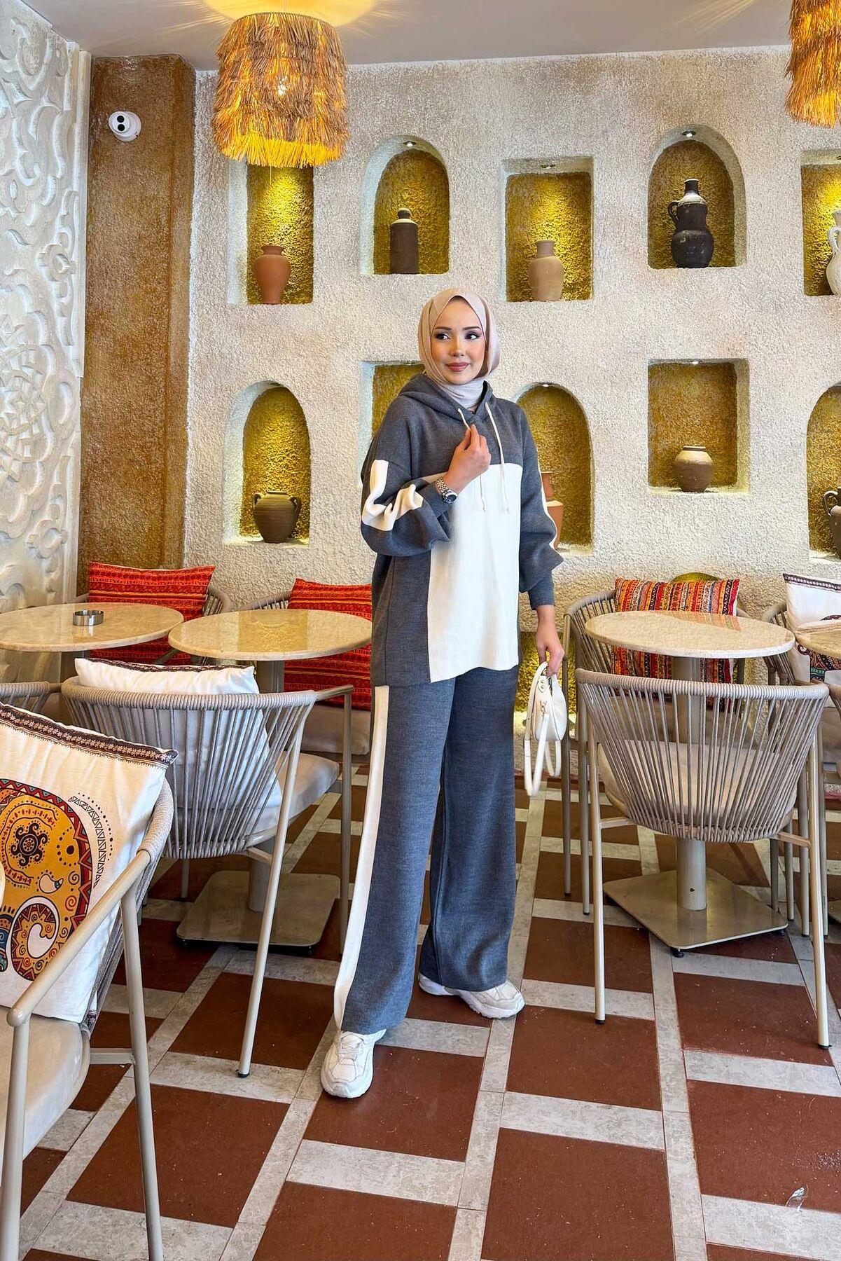 Hooded Two-Tone Knitwear Set Gray (125M00612144R19STD)
