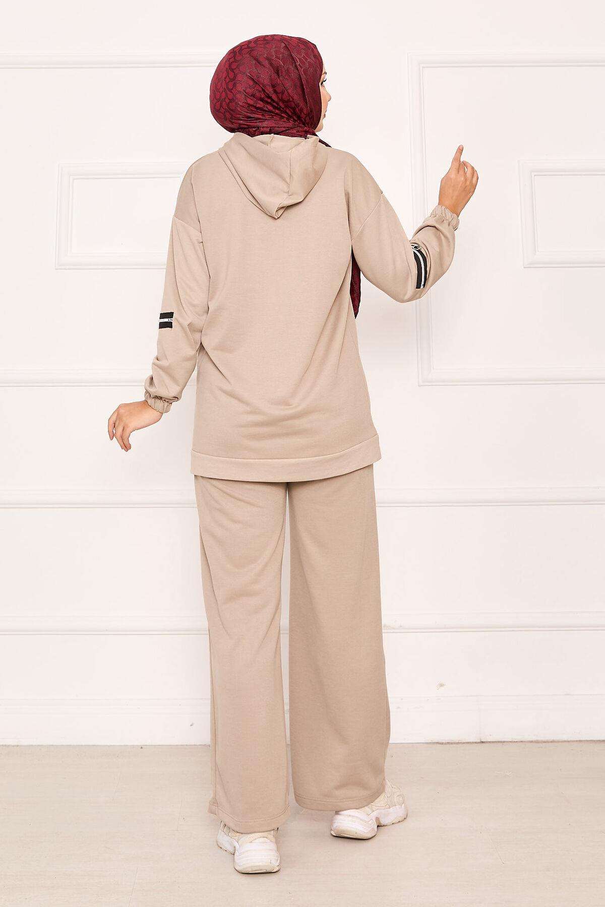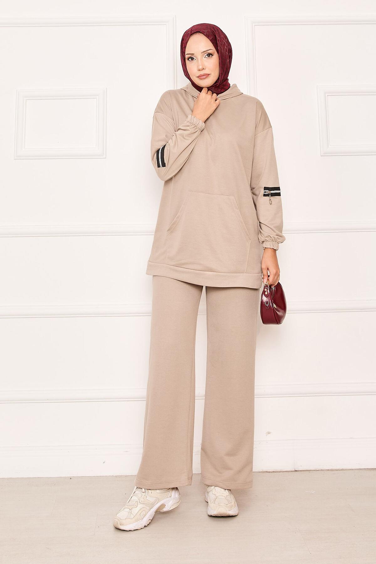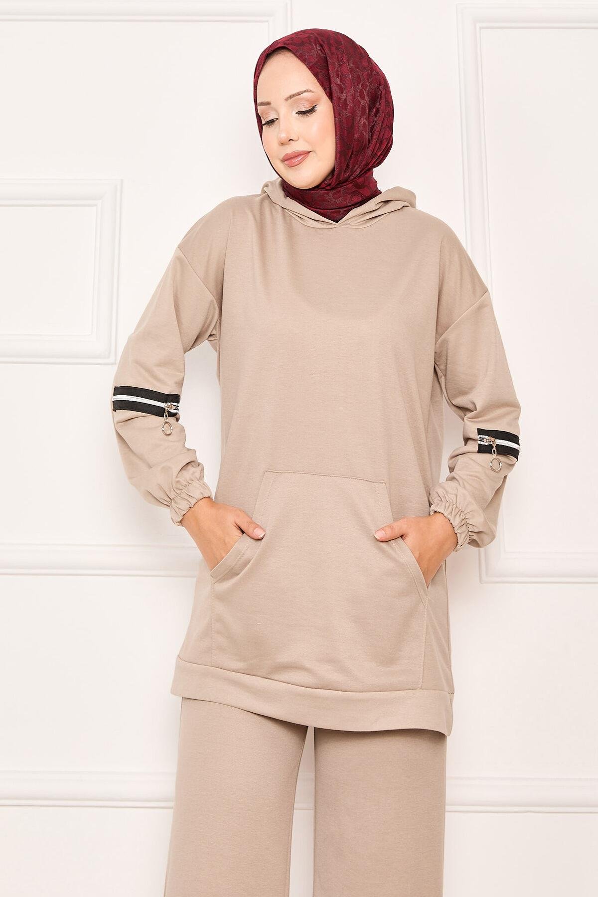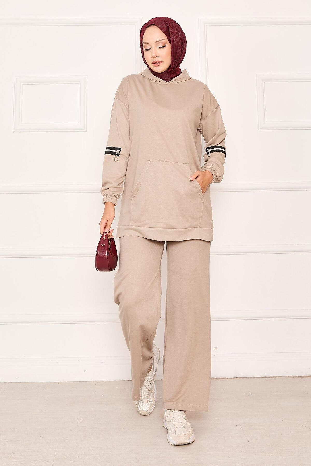 Hooded Zippered Sleeve 2 Piece Set Beige (125M00615047R0638)