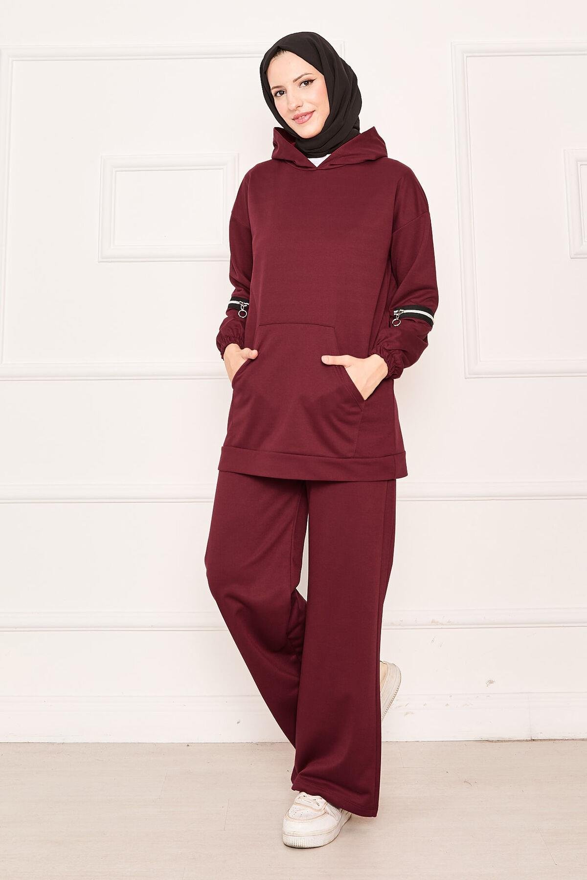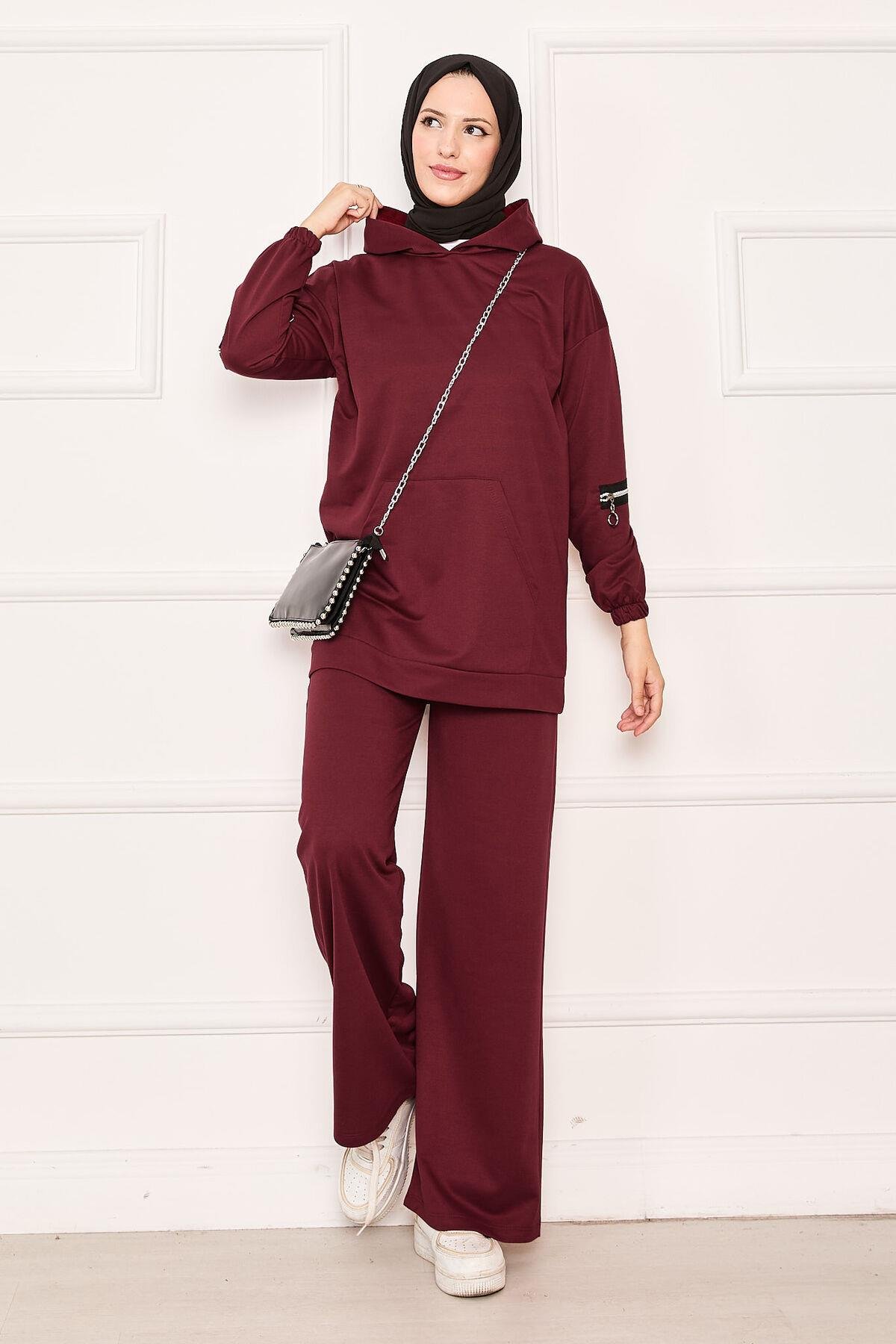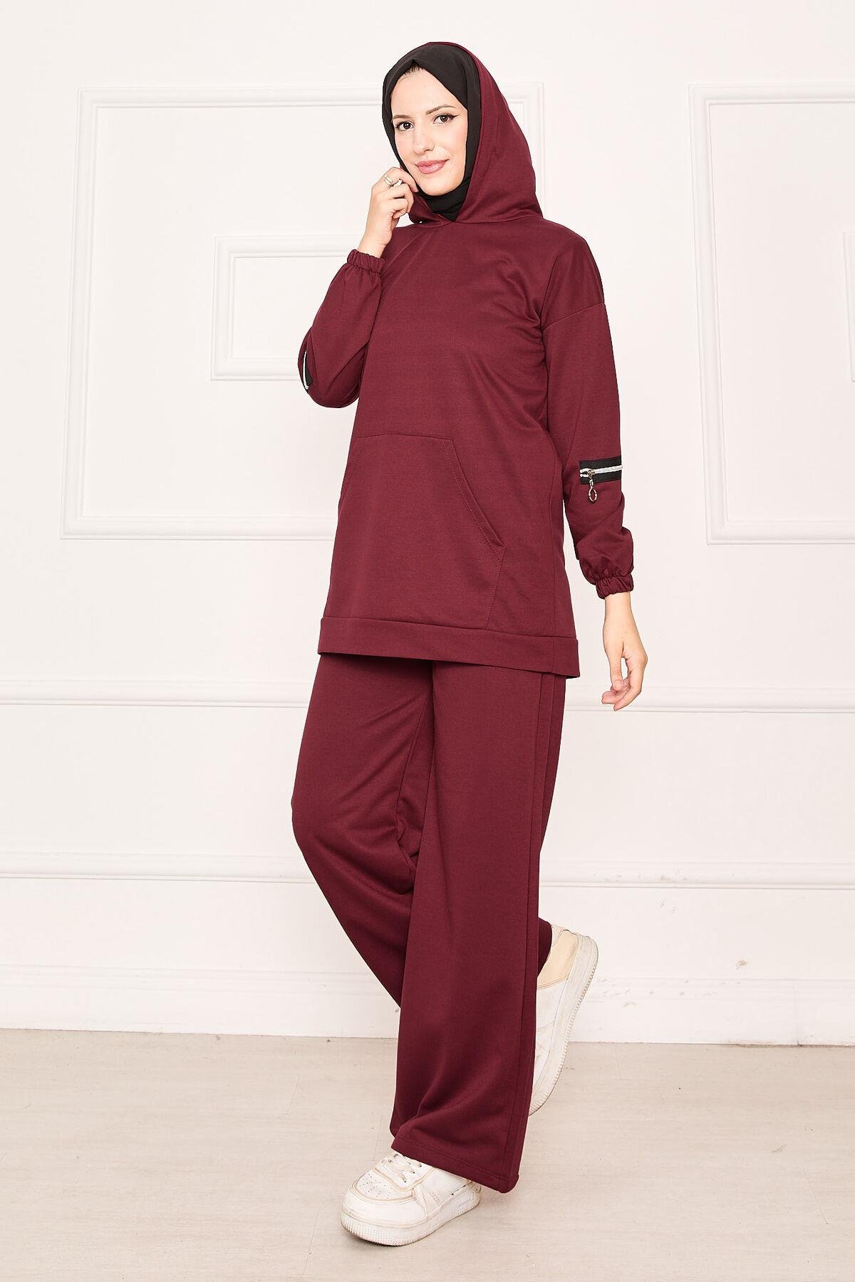 Hooded Zippered Sleeve 2 Piece Set Burgundy (125M00615047R0838)
