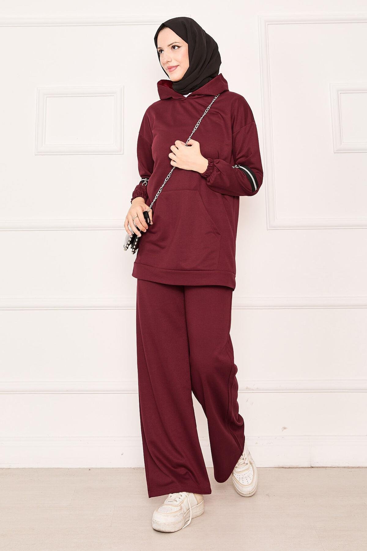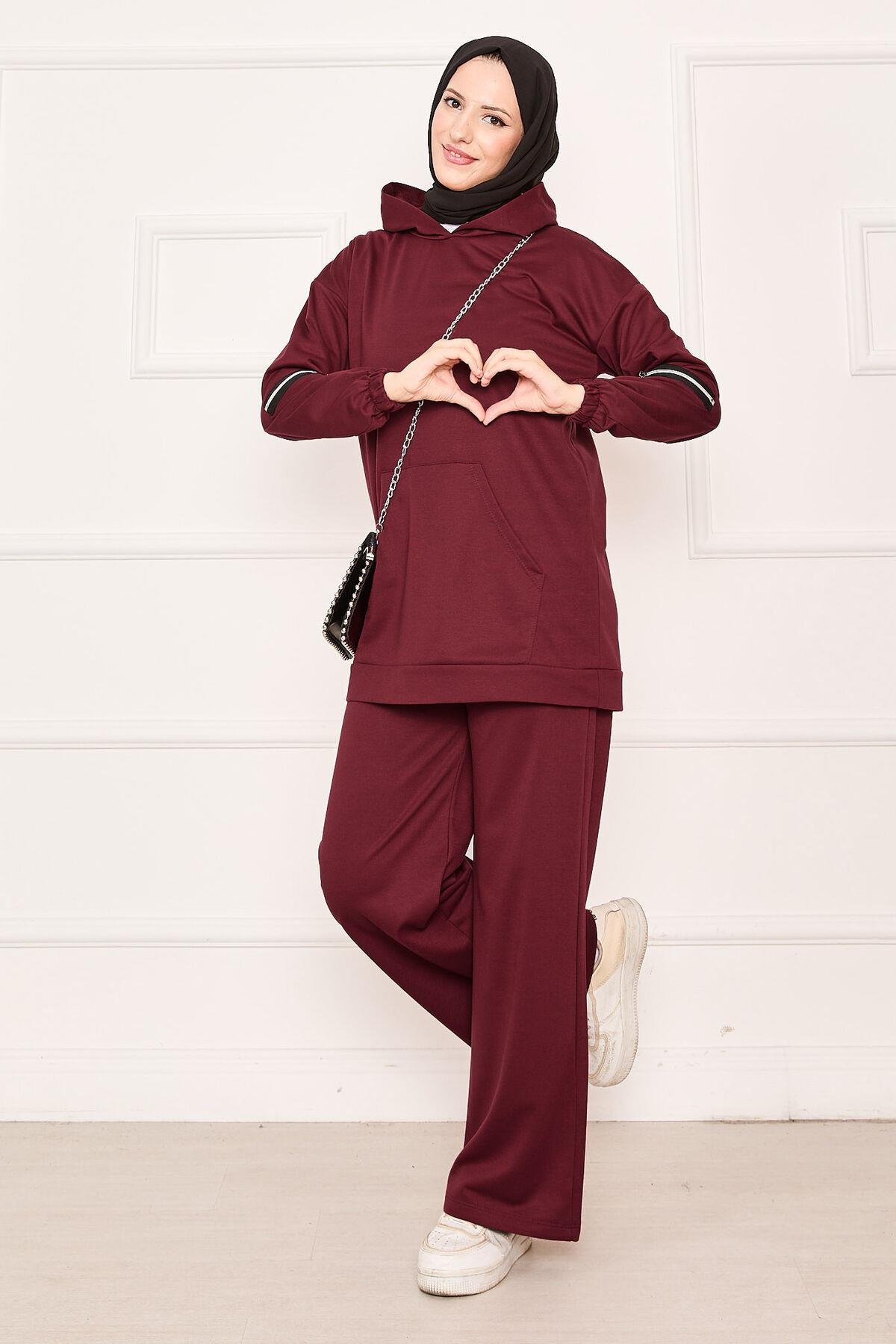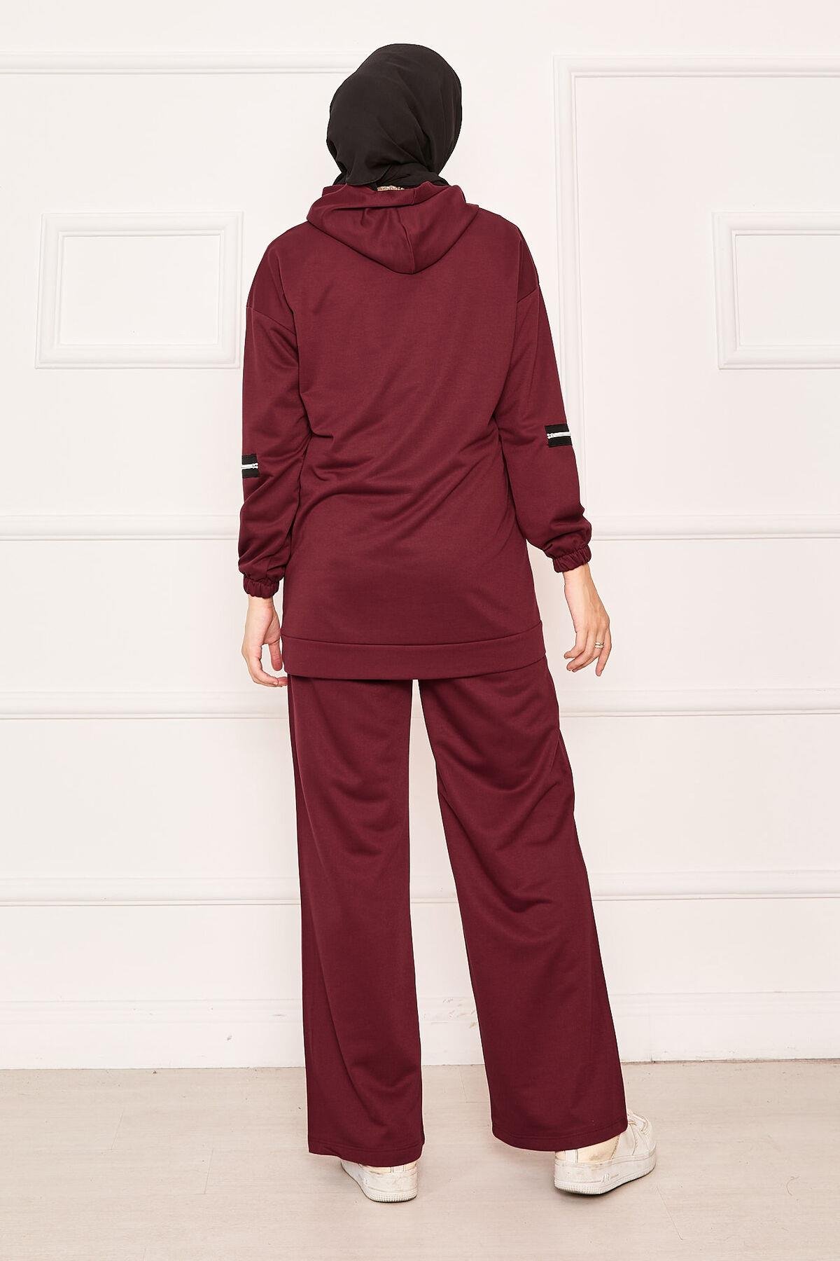 Hooded Zippered Sleeve 2 Piece Set Burgundy (125M00615047R0838)