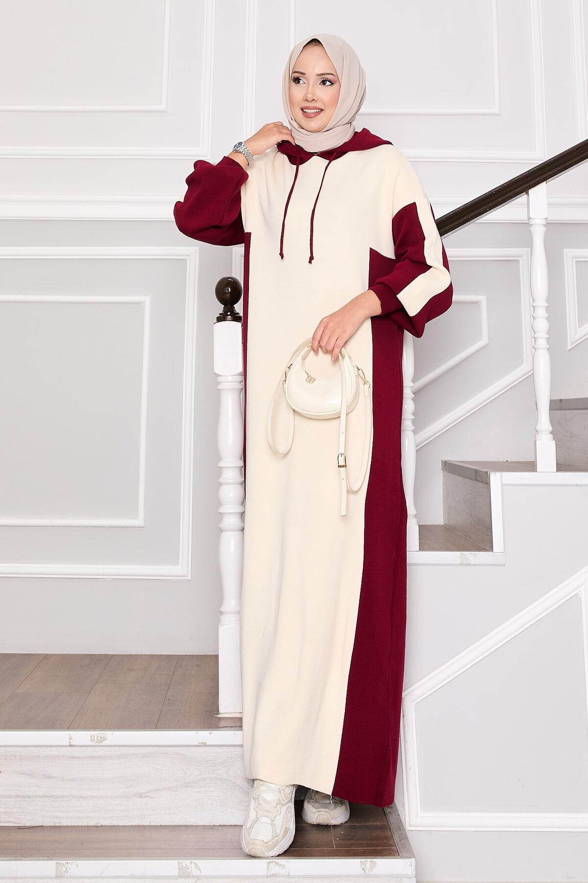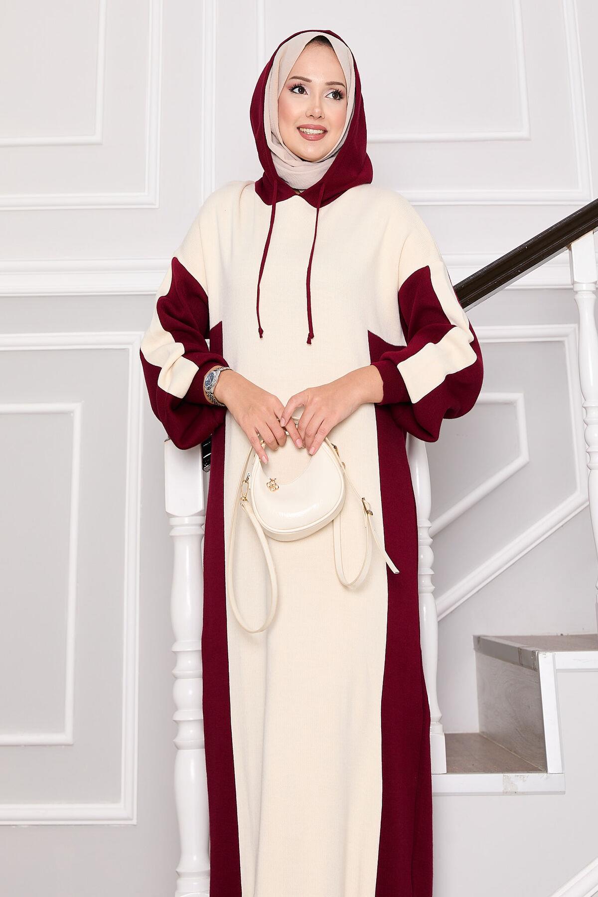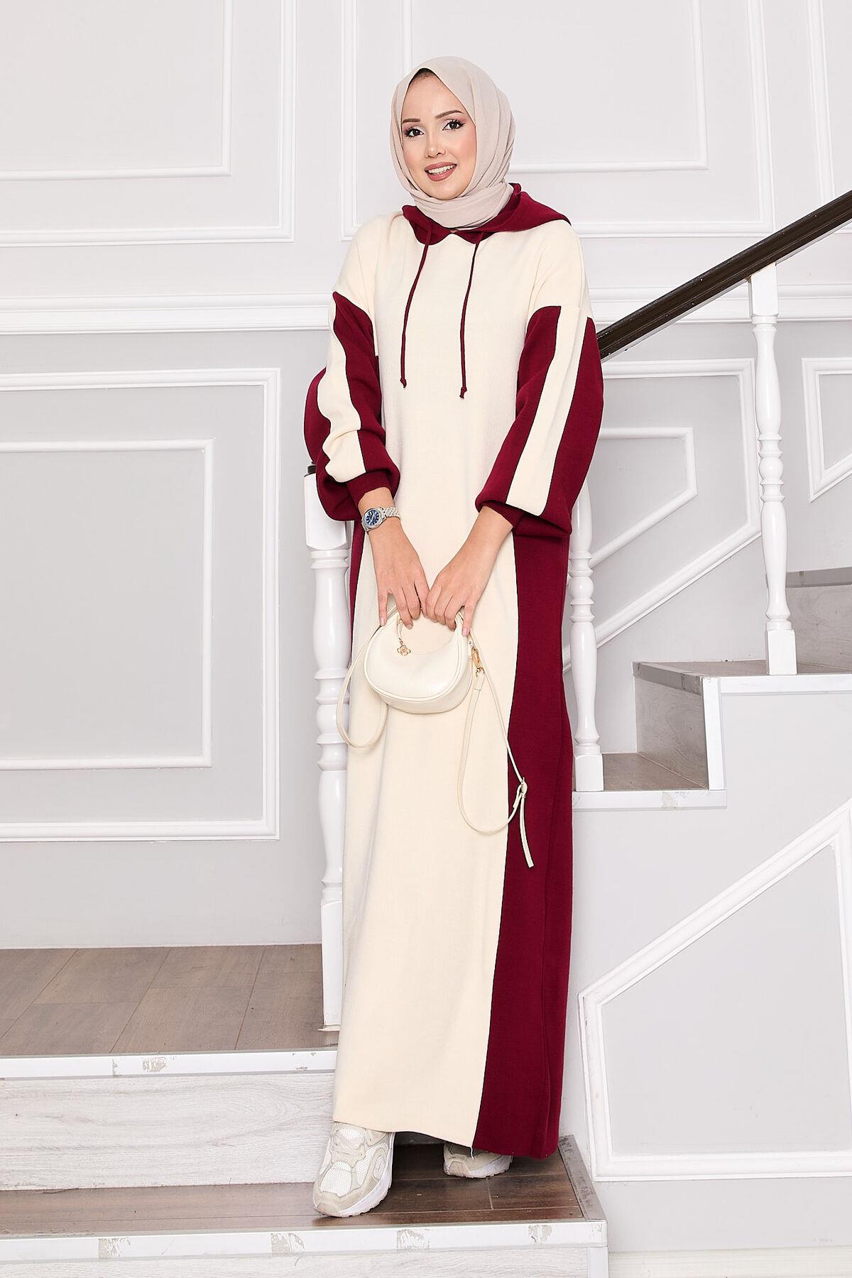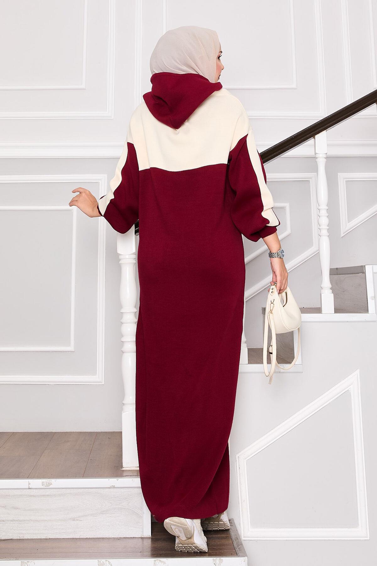 Hooded Sports Knit Dress Burgundy-Ecru (125M00821178B88STD)