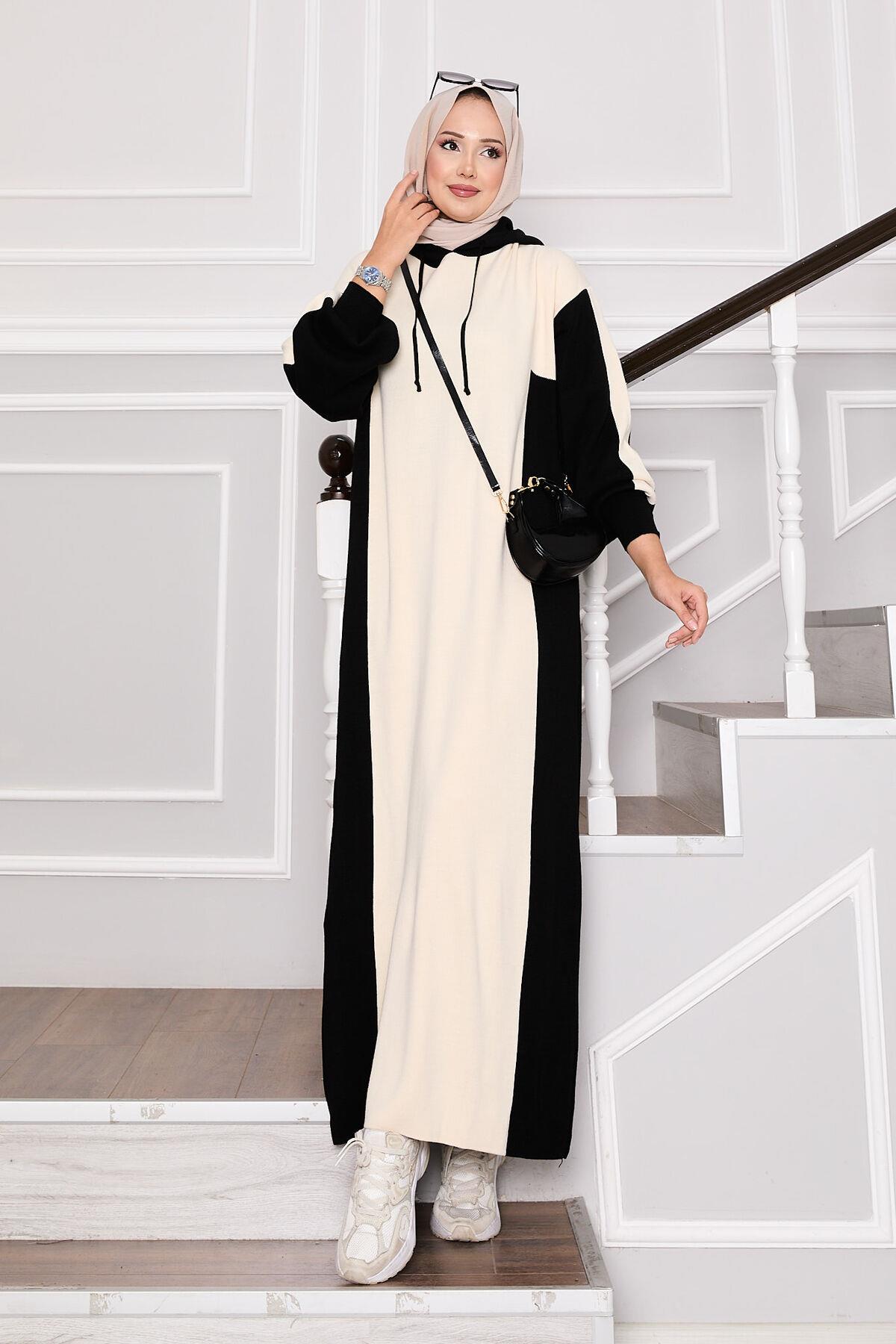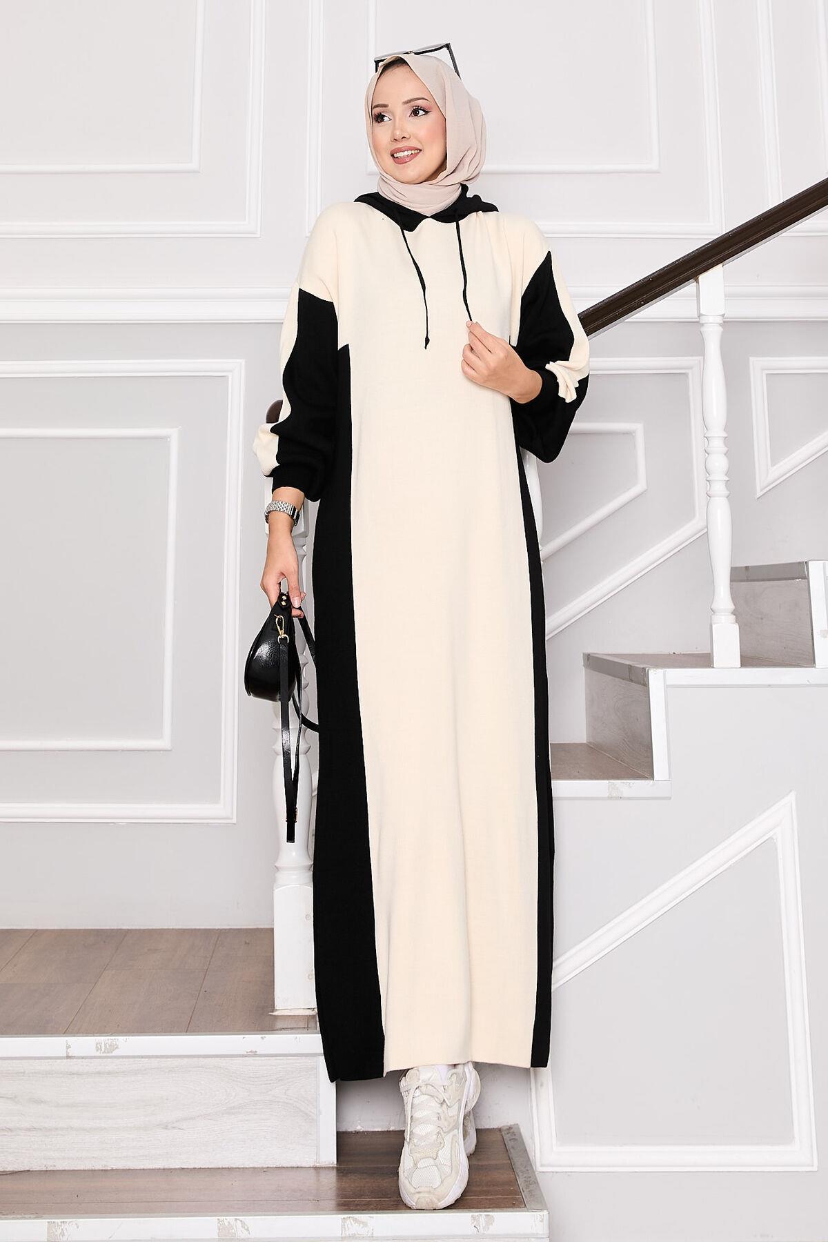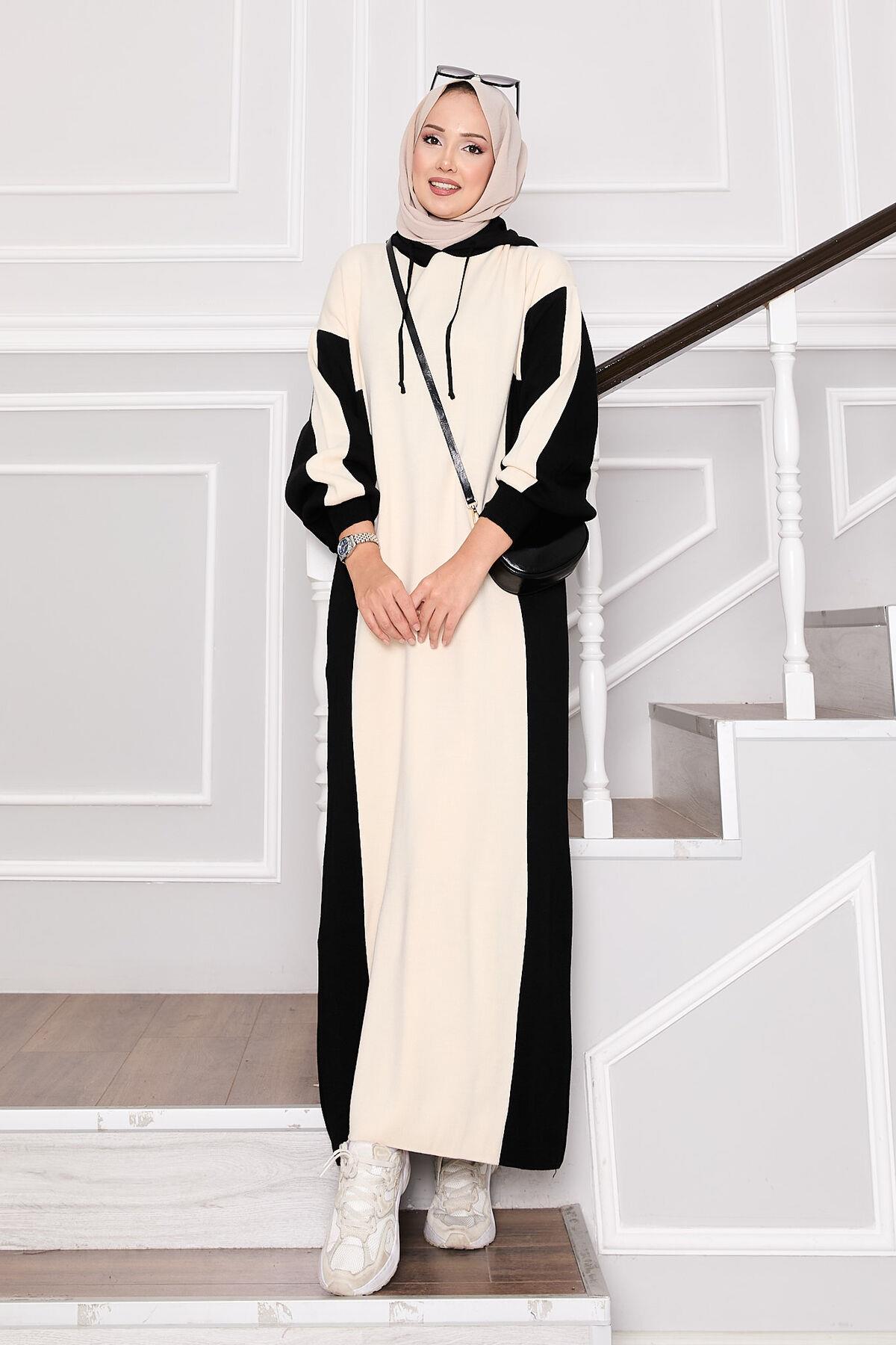 • The product is seasonal. New season hooded two-tone knitwear dress