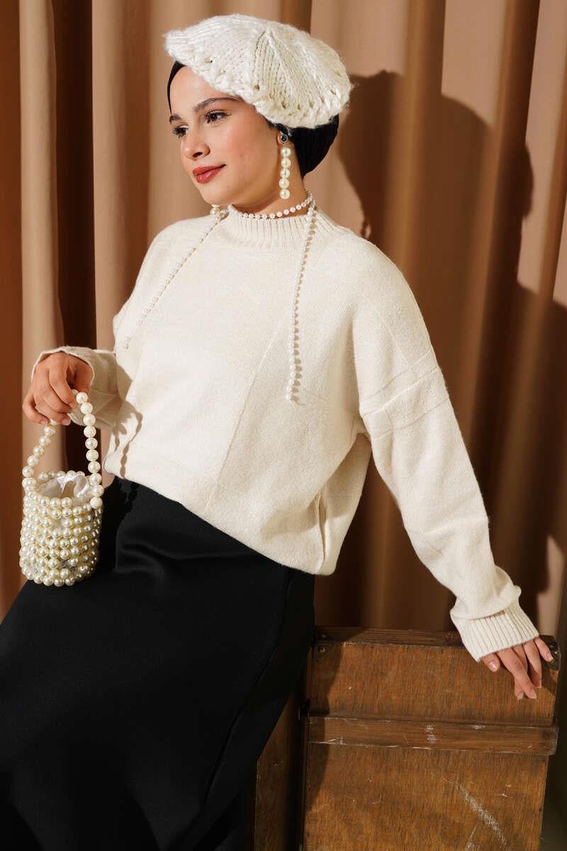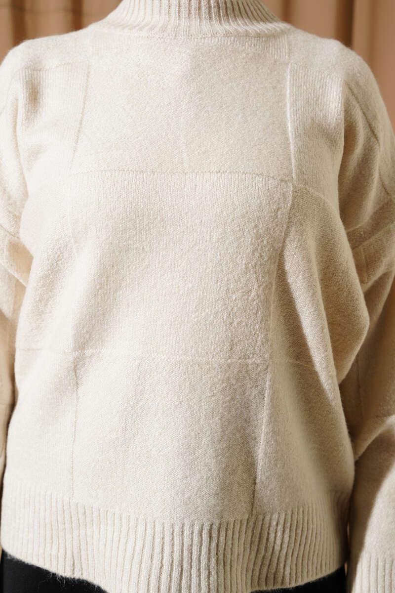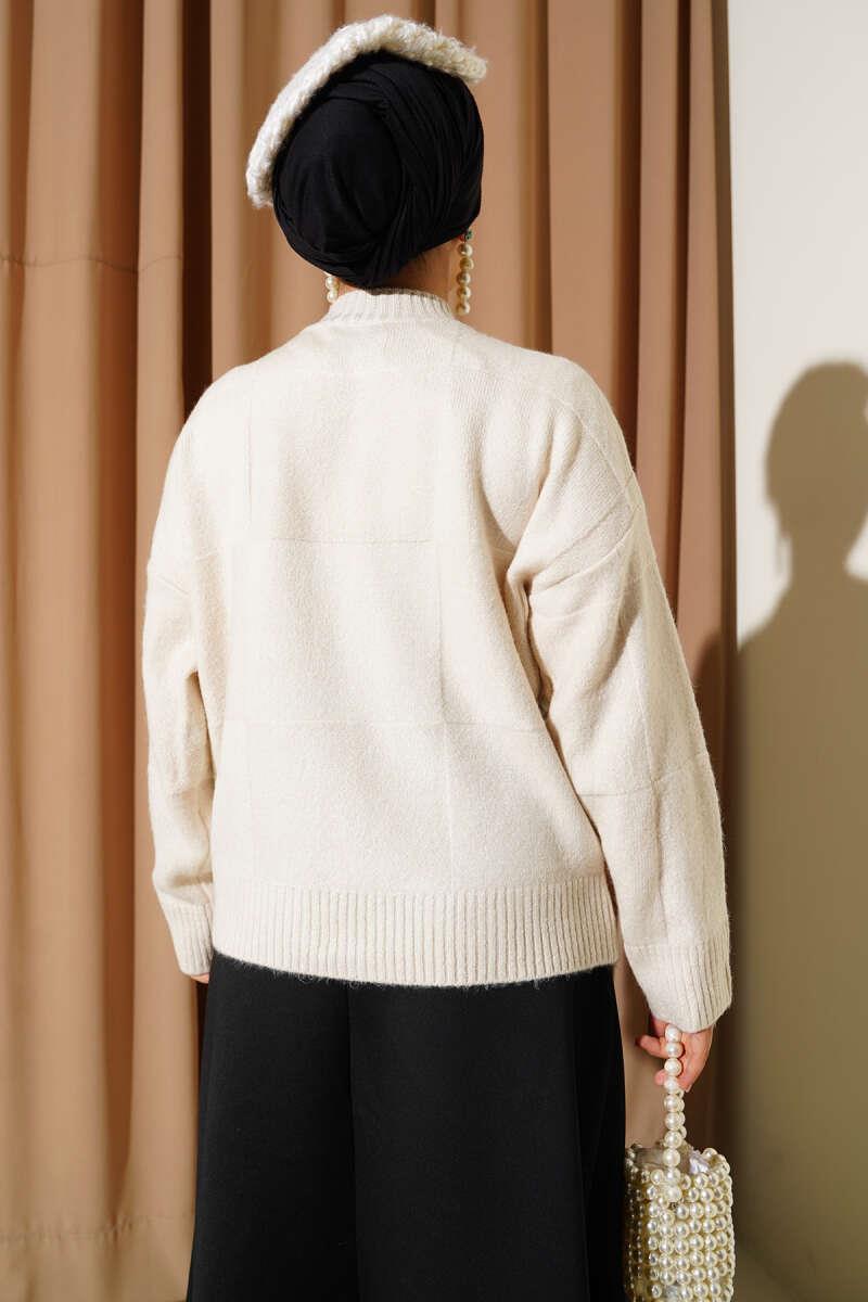 Square Patterned Knitted Sweater Beige (8374-0834-669539)