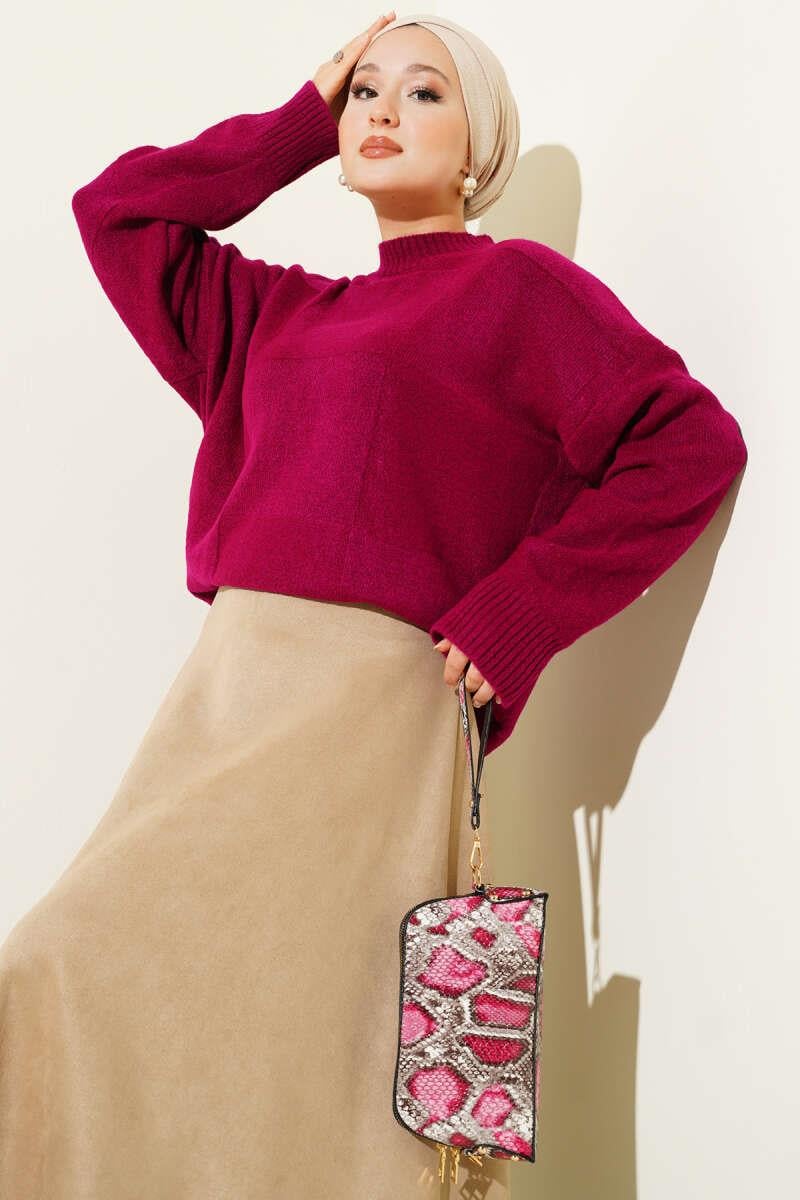 Square Patterned Knitwear Sweater Violet (8374-0834-679240)