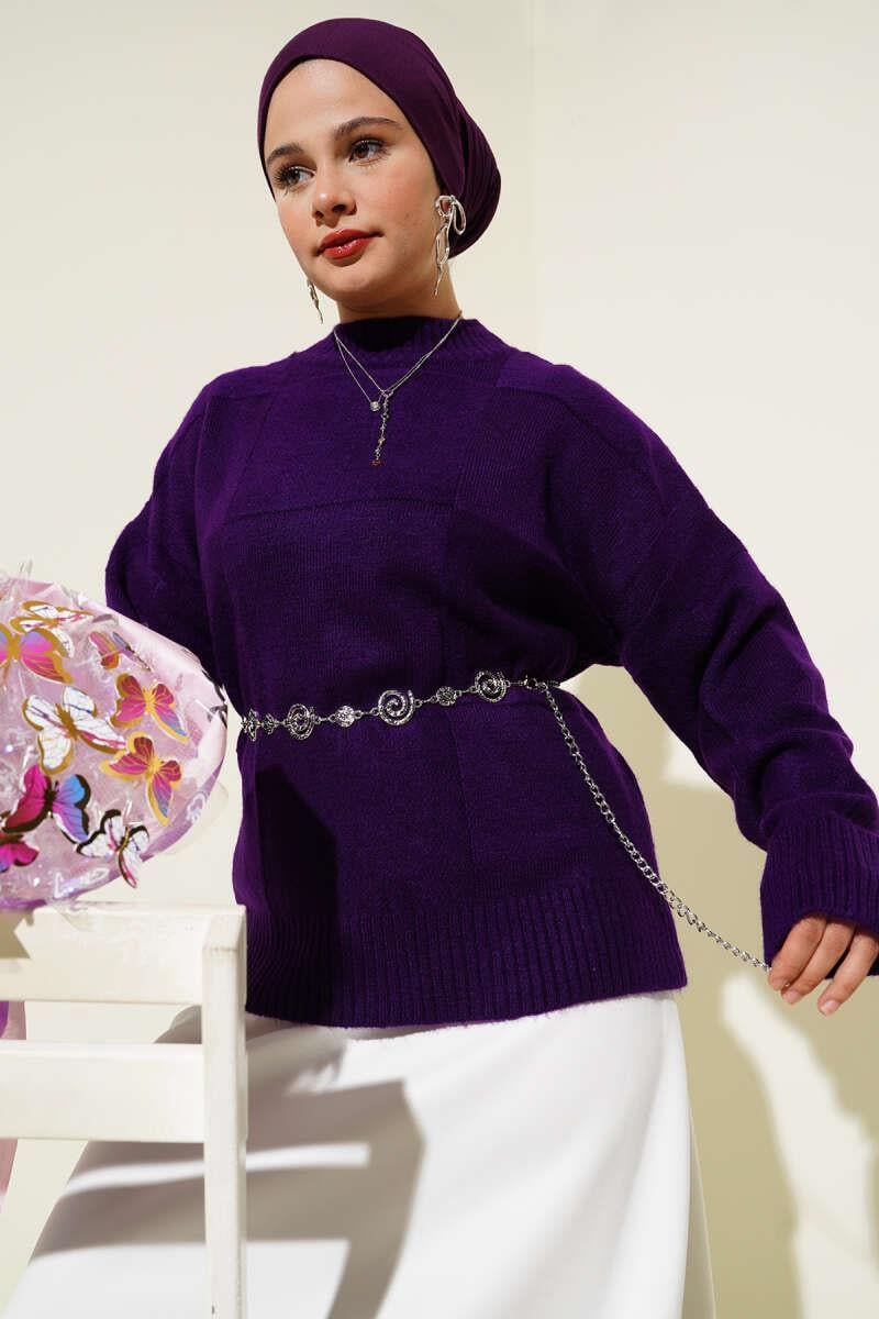 Square Patterned Knitwear Sweater Purple (8374-0834-669542)