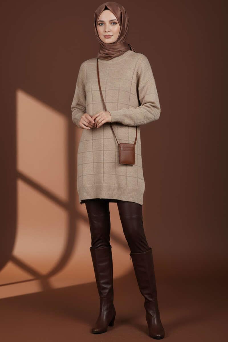 Square Embossed Soft Knit Tunic Latte (0589-6014-676920)