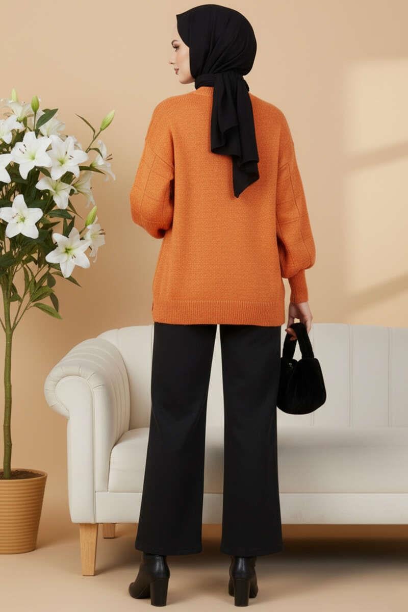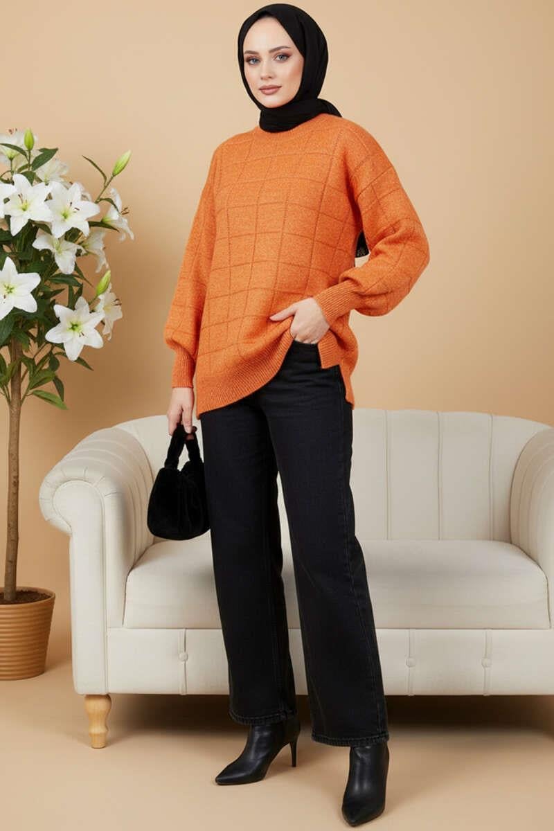 Square Embossed Soft Knit Tunic Orange (0589-6014-676922)