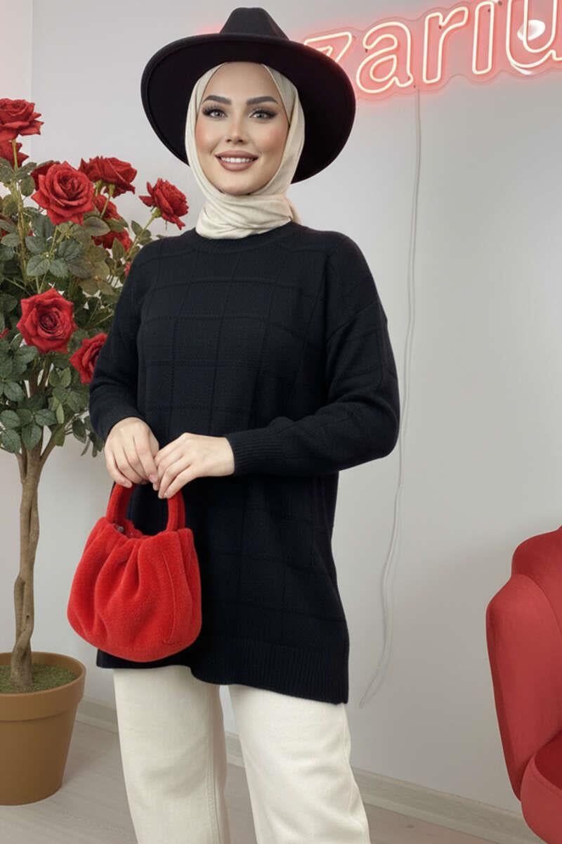 Square Embossed Soft Knit Tunic Black (0589-6014-676923)
