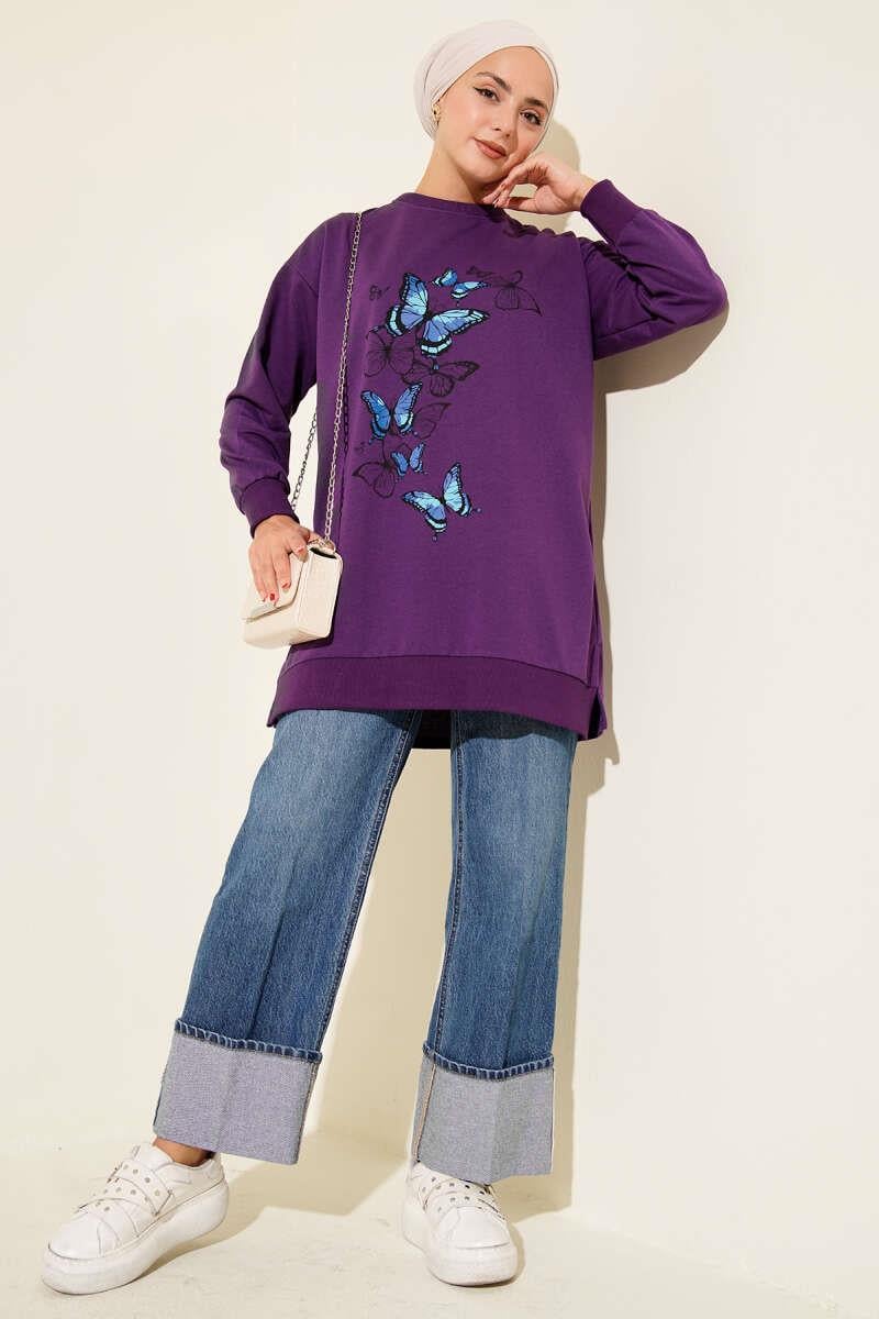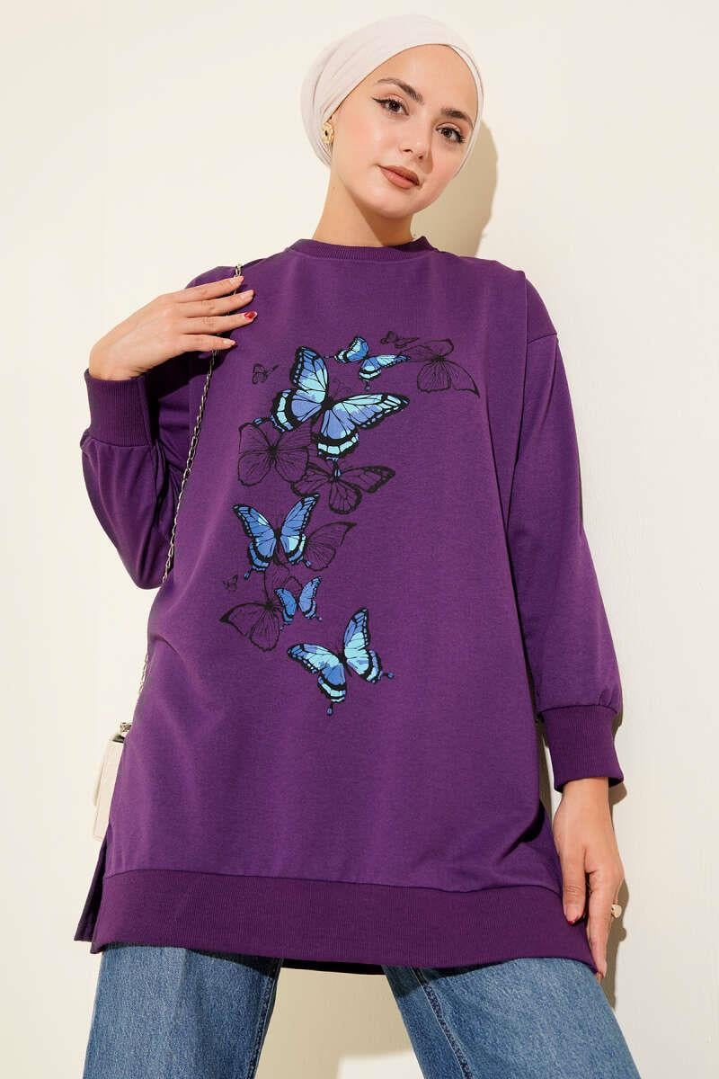 Butterfly Printed Two Thread Tunic Purple (0997-750-679058)