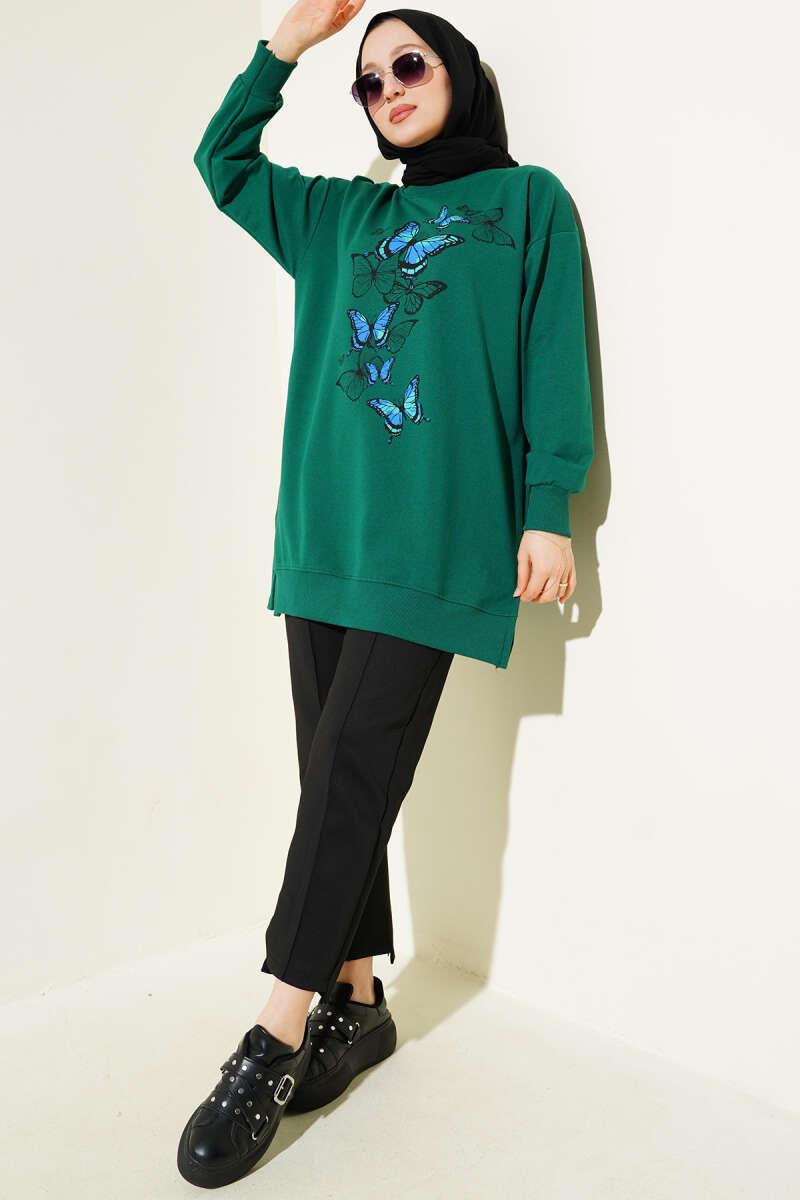 Butterfly Printed Two Thread Tunic Green (0997-750-604553)