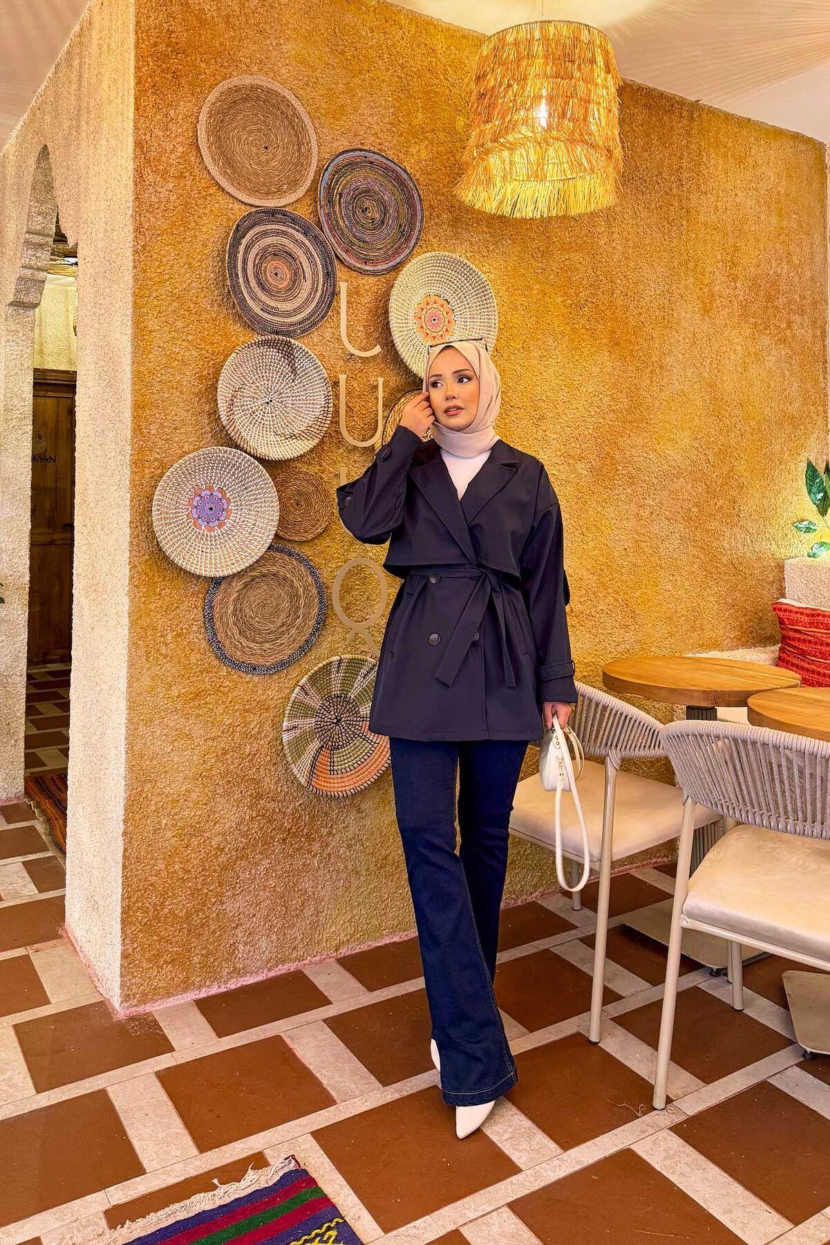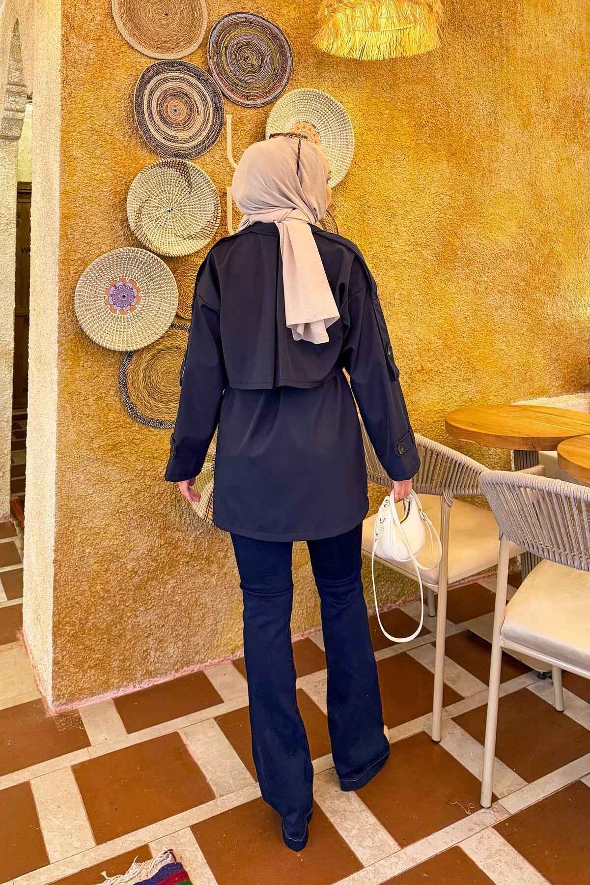 Belted Epaulette Detailed Premium Trench Coat Navy Blue (125M01921147R3338)