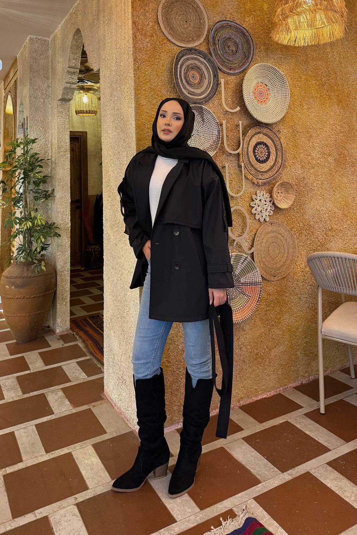 Belted Epaulette Detailed Premium Trench Coat Black (125M01921147R5238)