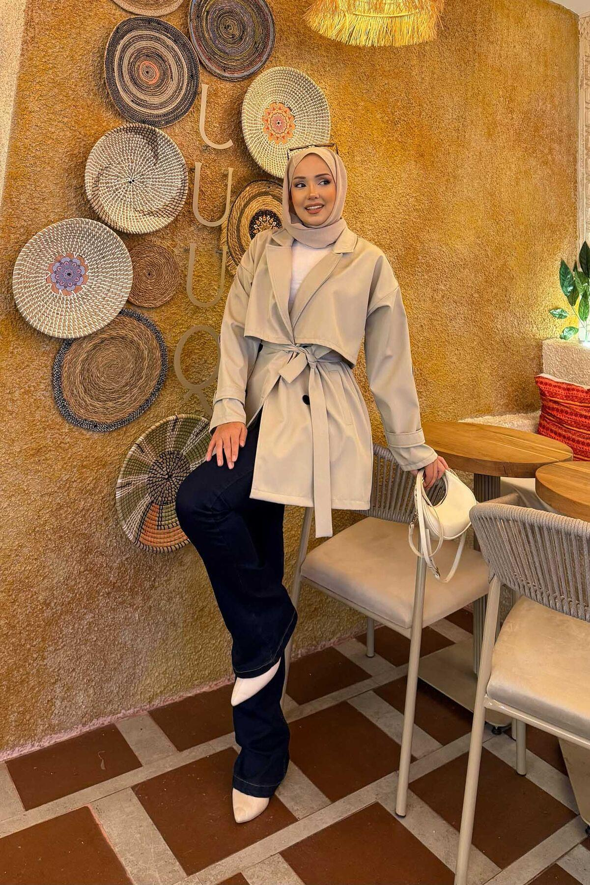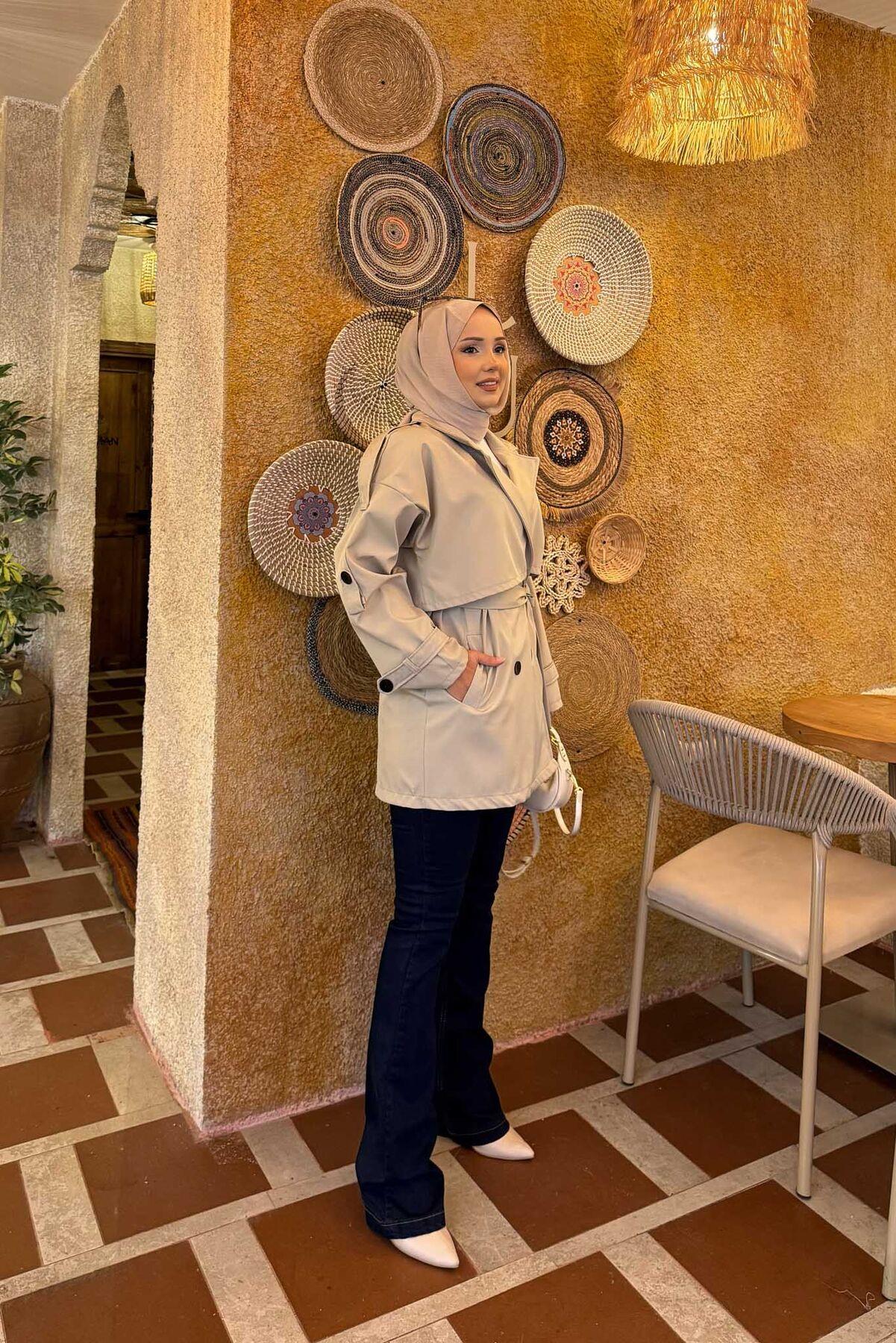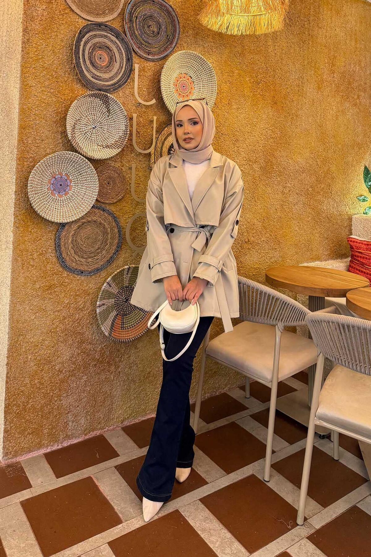 Belted Epaulette Detailed Premium Trench Coat Stone (125M01921147R5938)