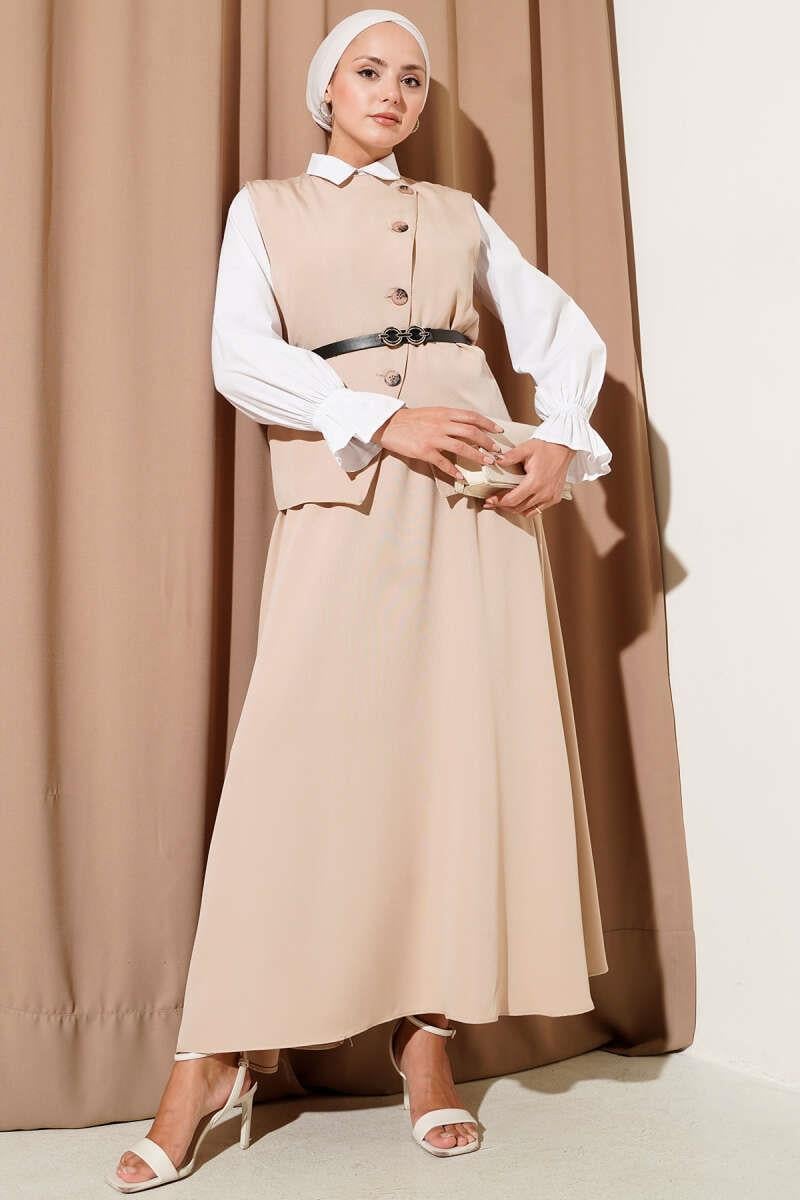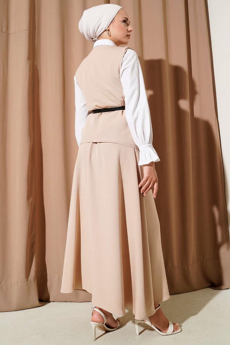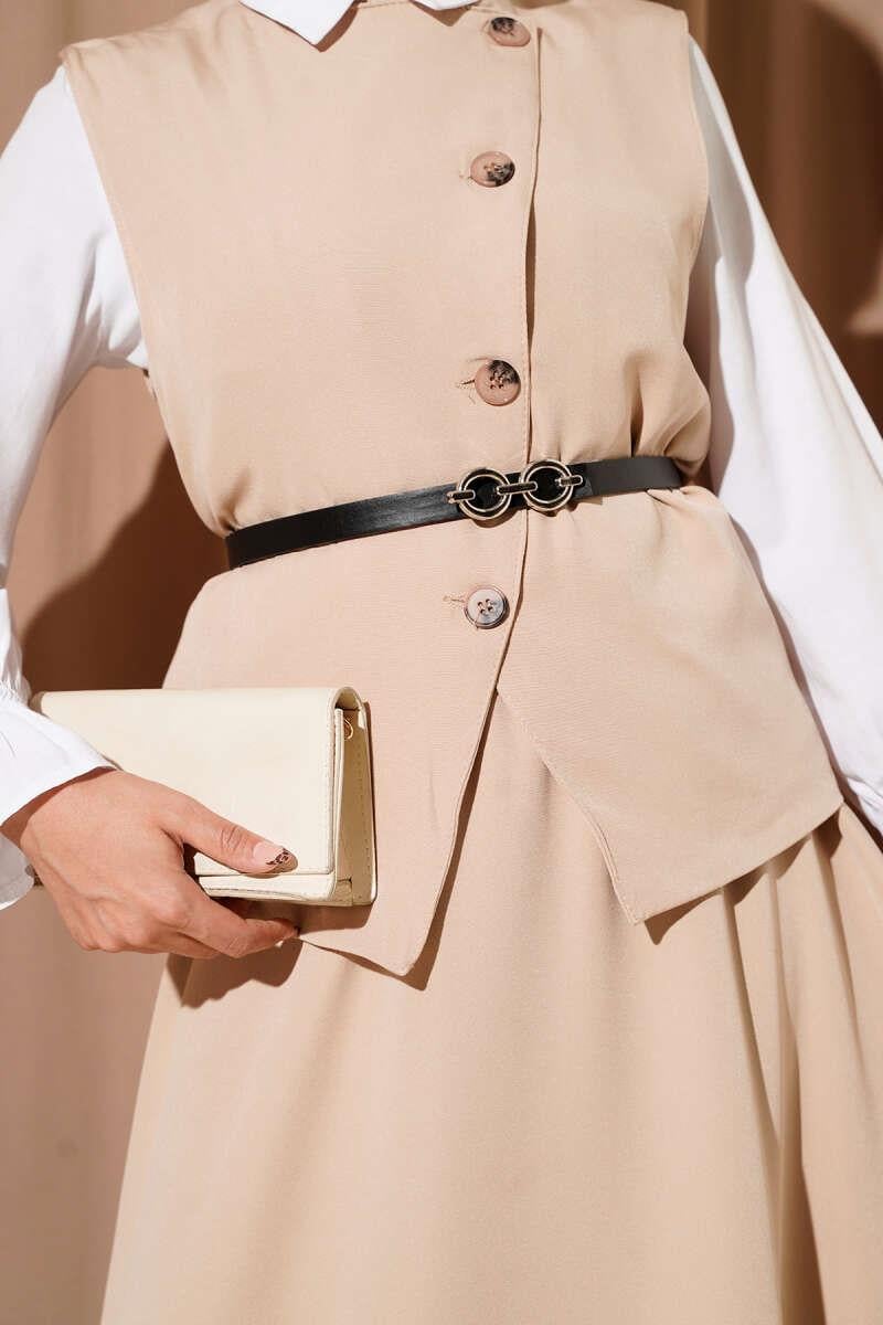 Belted Cross Button Vest Skirt Suit Beige (0569-3171-10-658587)