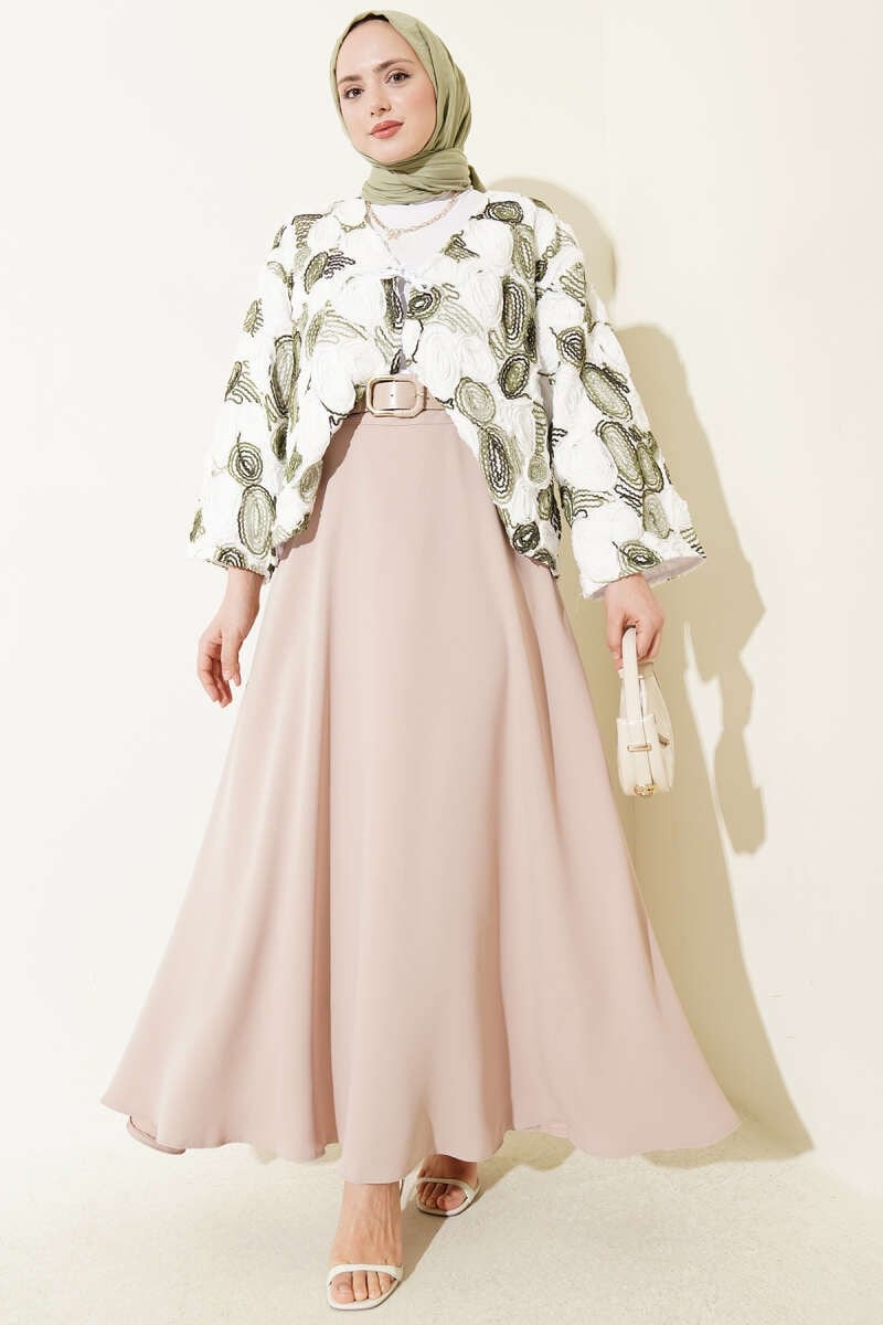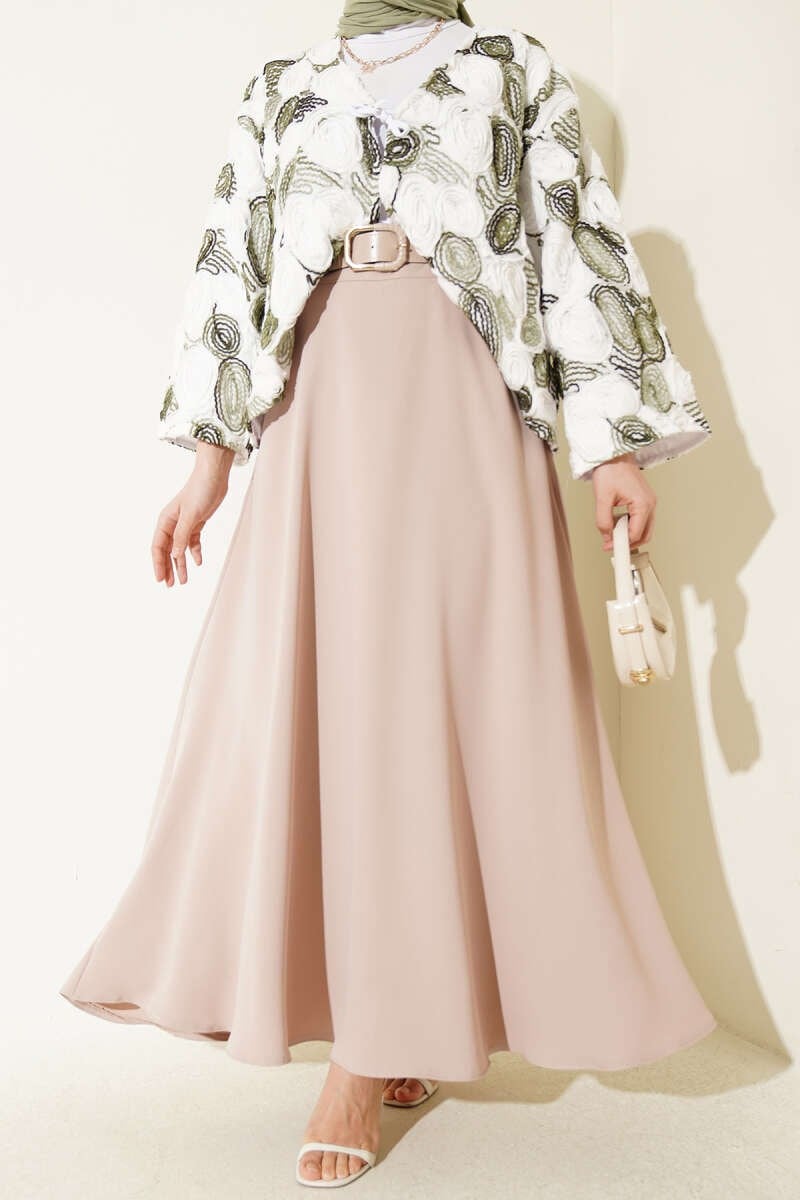 Belted Zippered Basic Skirt Beige (0262-4327-10-739874)