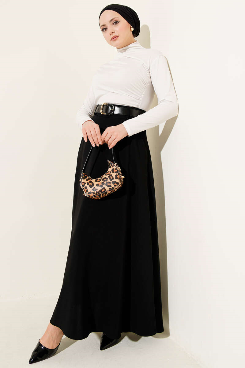 Belted Zippered Basic Skirt Black (0262-4327-10-719428)