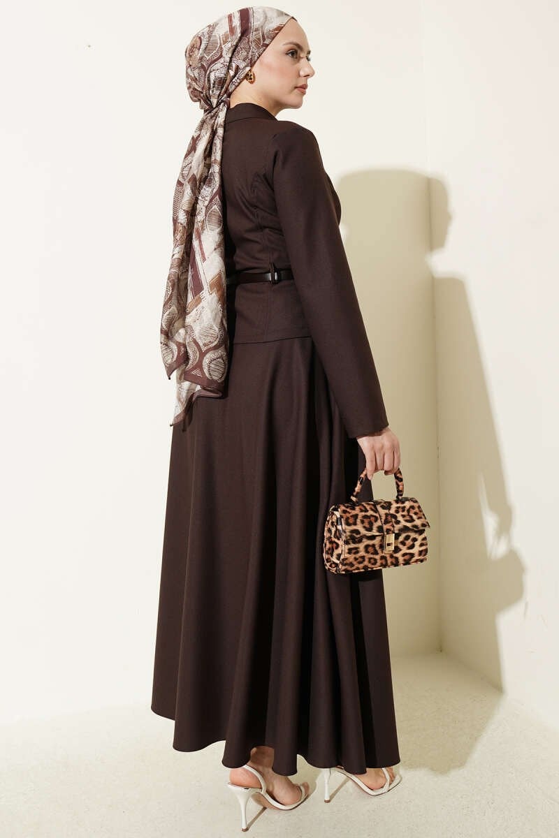 Belted Zippered Basic Skirt 2 Piece Set in Coffee Brown (0582-13170-734864)