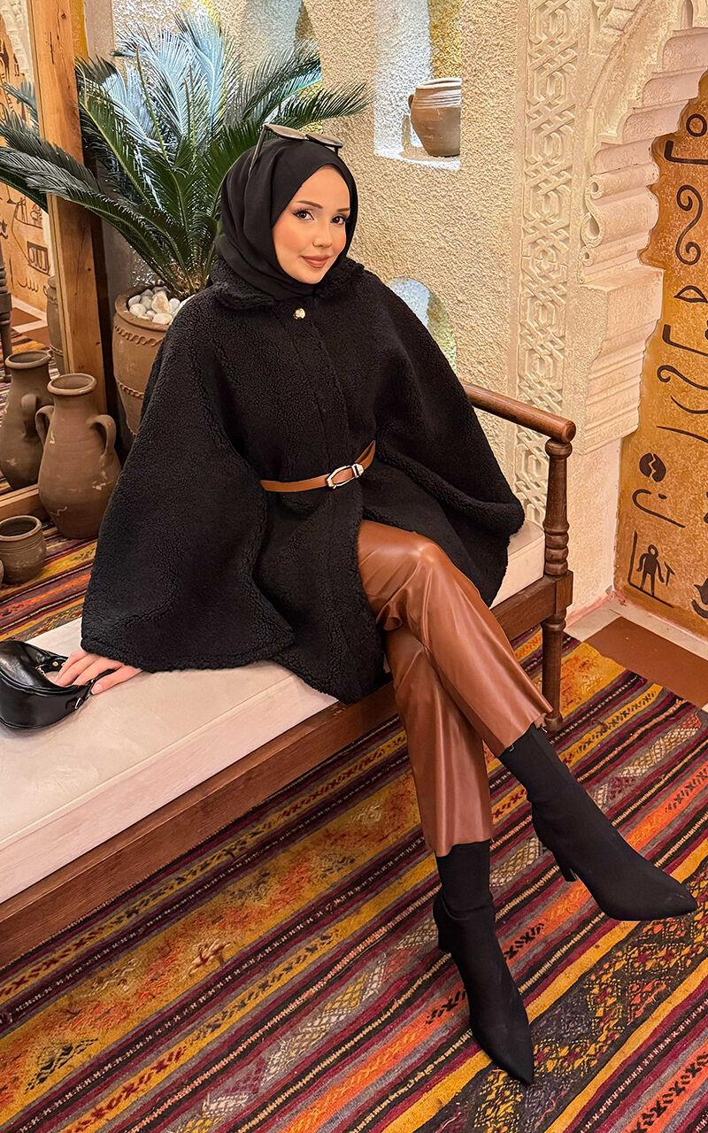 Belted Lamb Poncho Black (125M02315878R52STD)