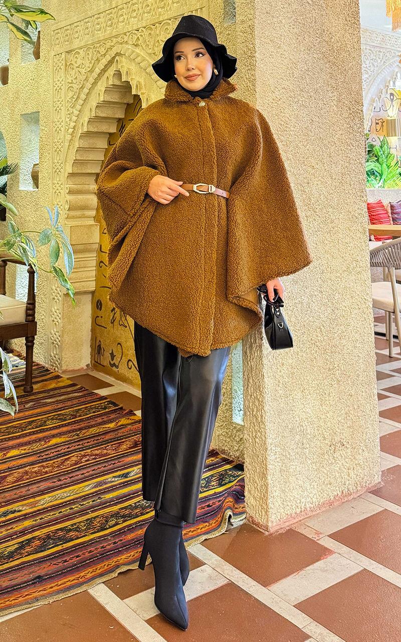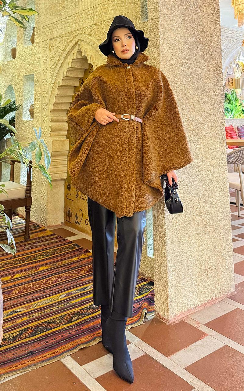 • This product is in Autumn & Winter fashion. Our belted lamb poncho has a single button front and a belt.