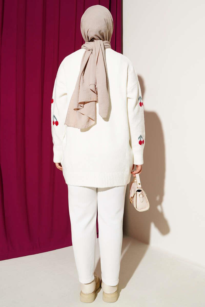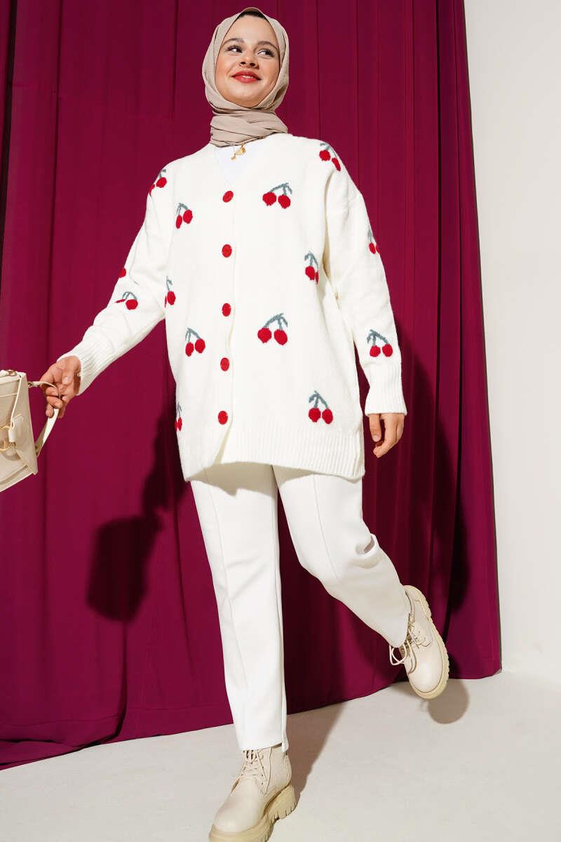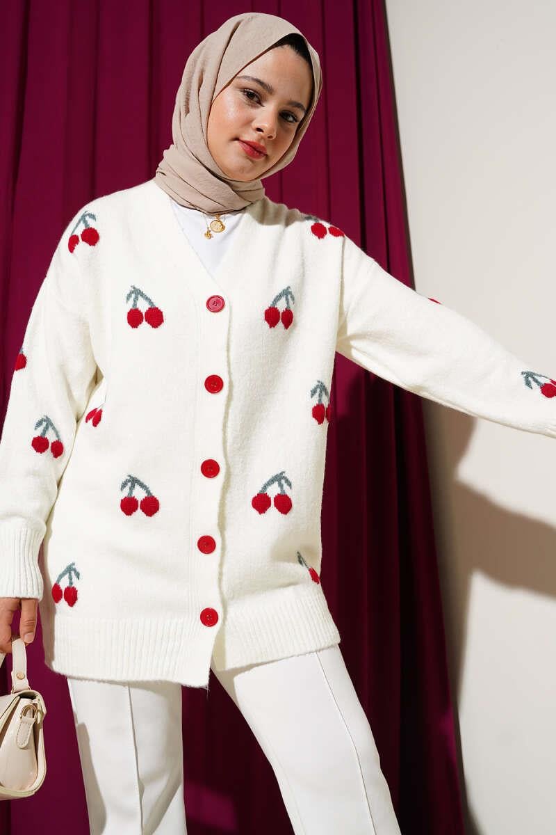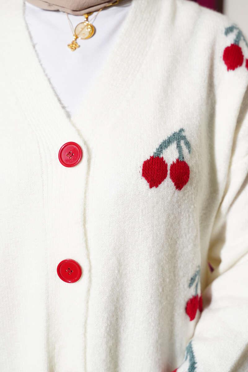 Cherry Patterned Buttoned Knit Cardigan in Ecru (8374-0094-669500)