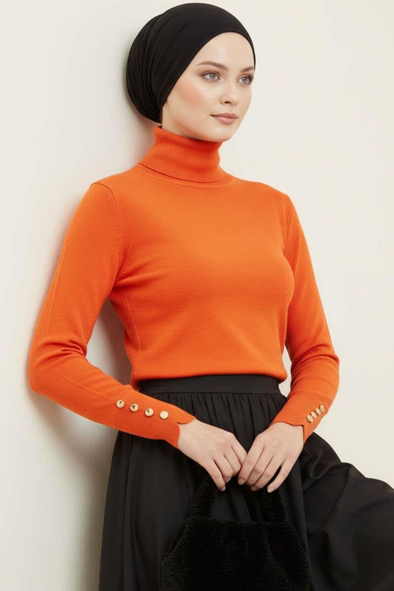 Turtleneck Knit Sweater with Cufflinks Orange (0592-6058-682420)