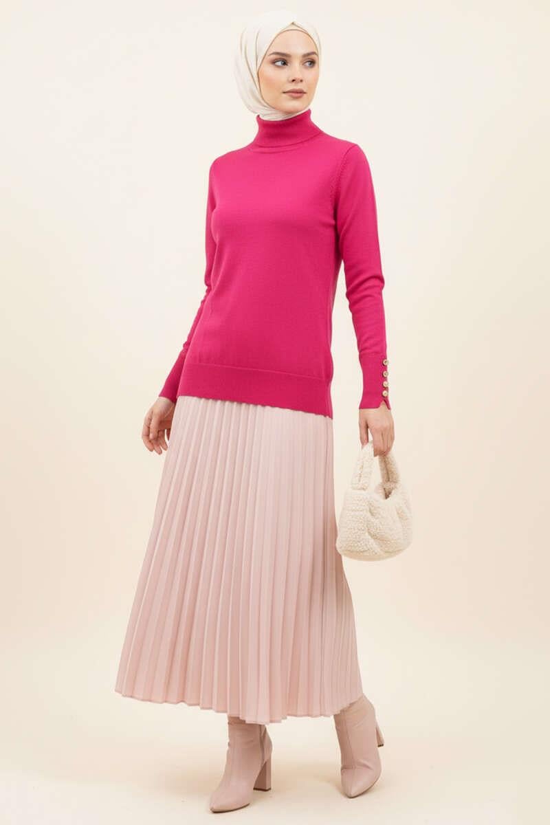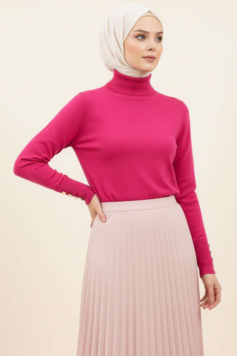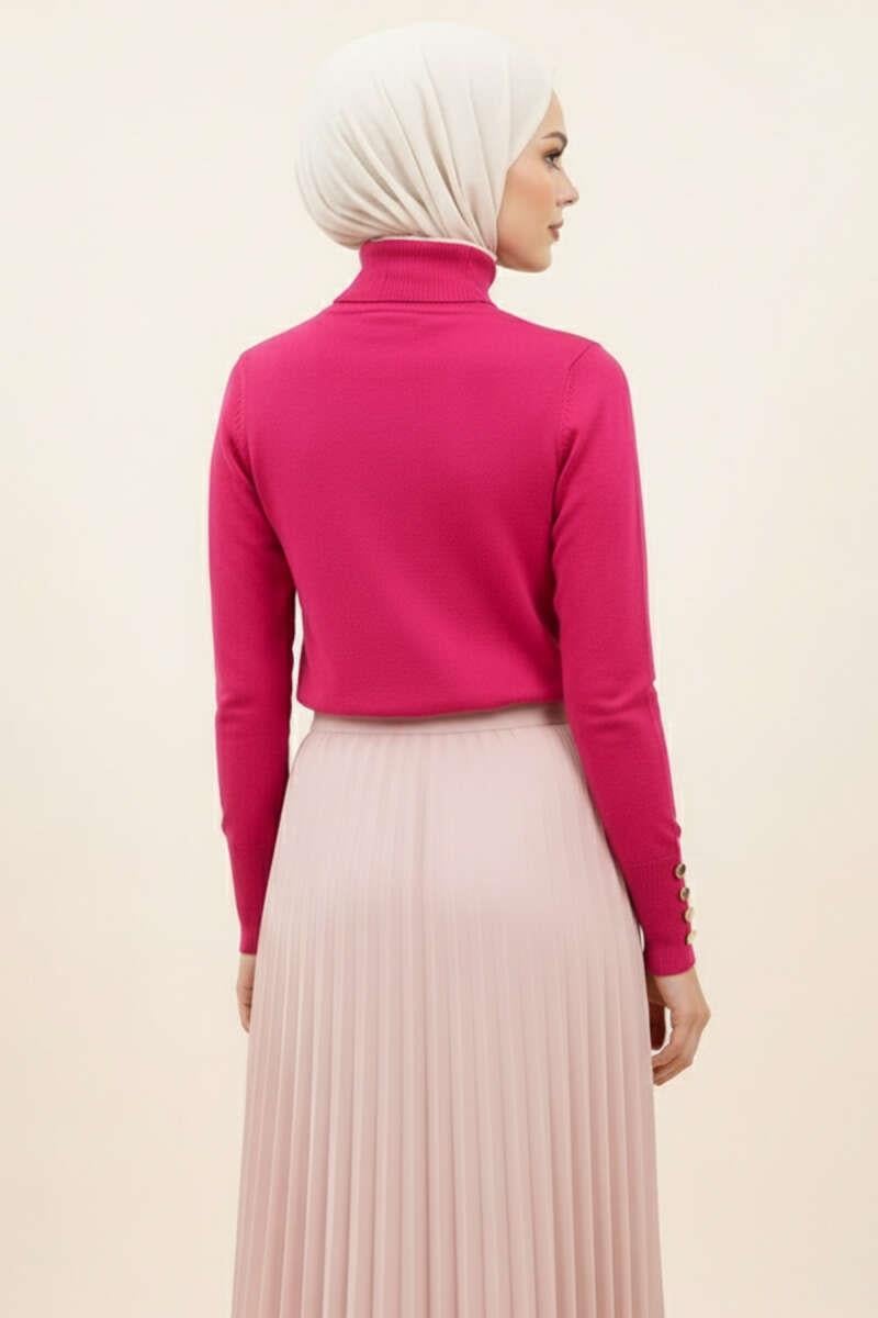 Turtleneck Knit Sweater with Cufflinks, Pink (0592-6058-682421)