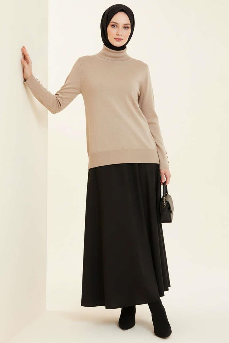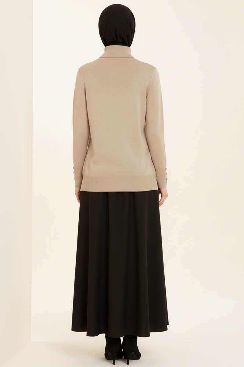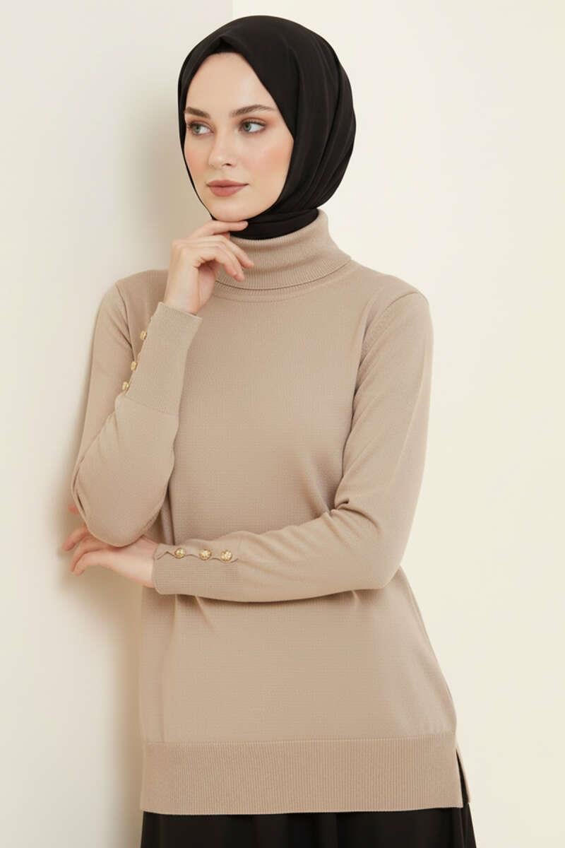 Turtleneck Knitted Sweater with Cufflinks, Mink (0592-6058-682423)