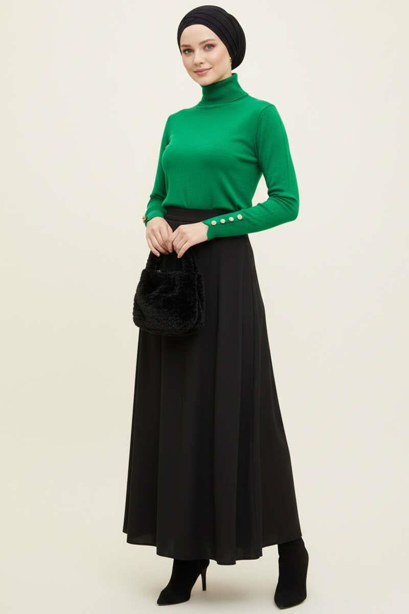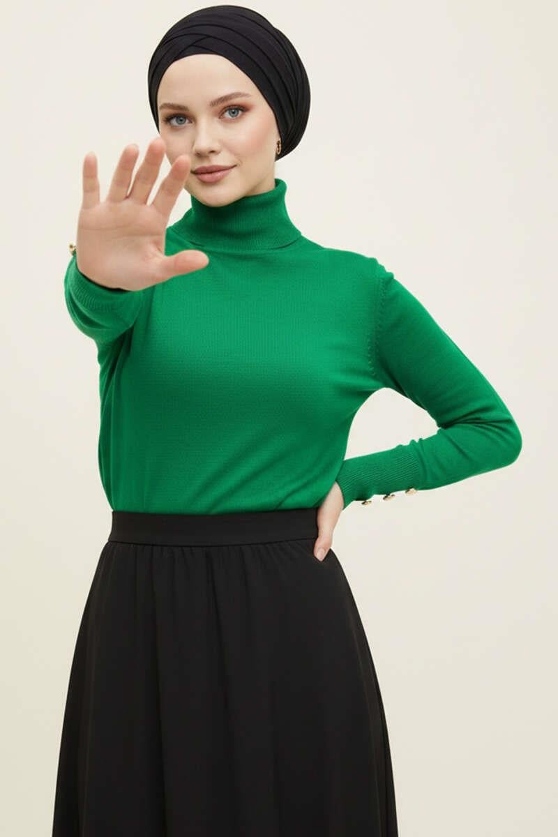 Turtleneck Knitted Sweater with Cufflinks Green (0592-6058-682424)