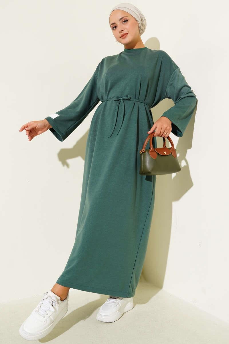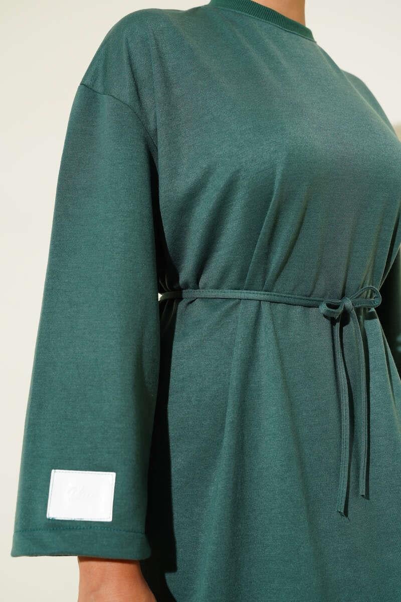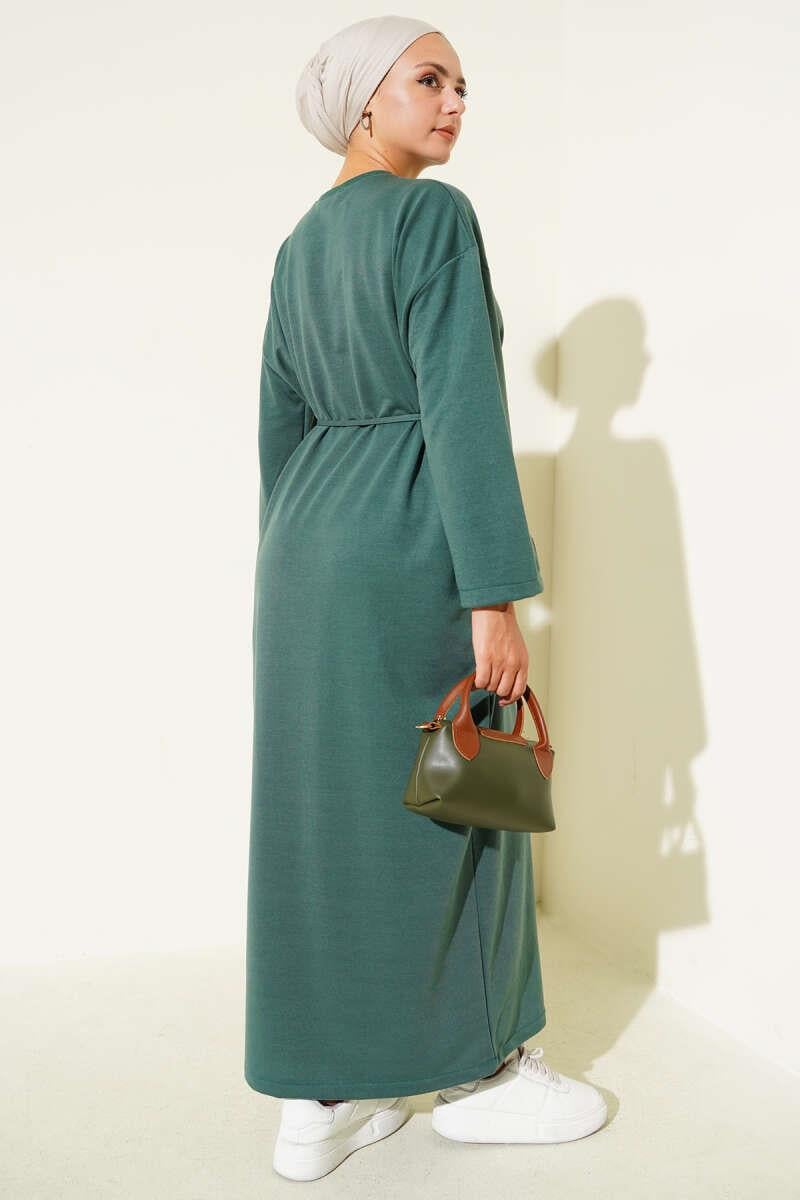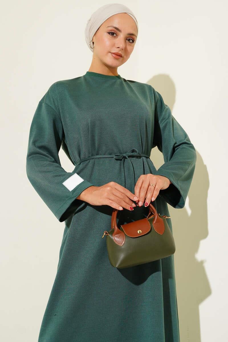 Green Lace-Up Dress with Embroidered Sleeves (0537-4504-671687)