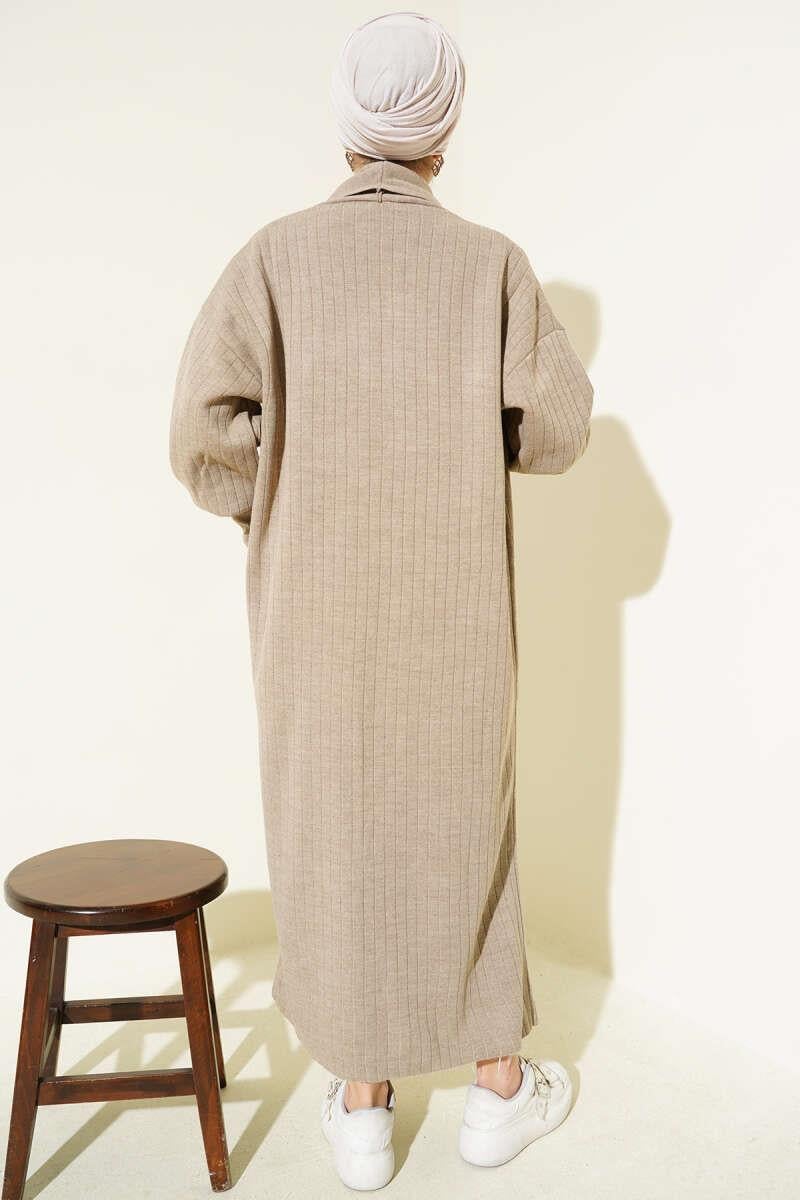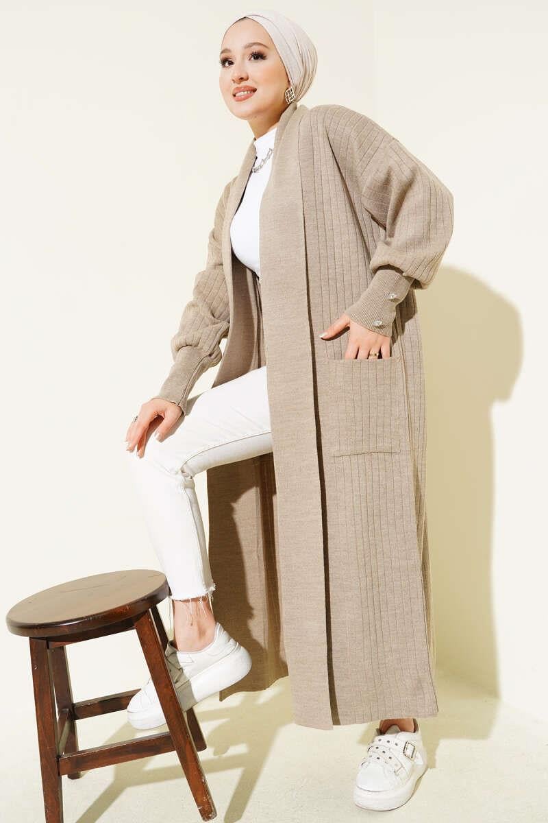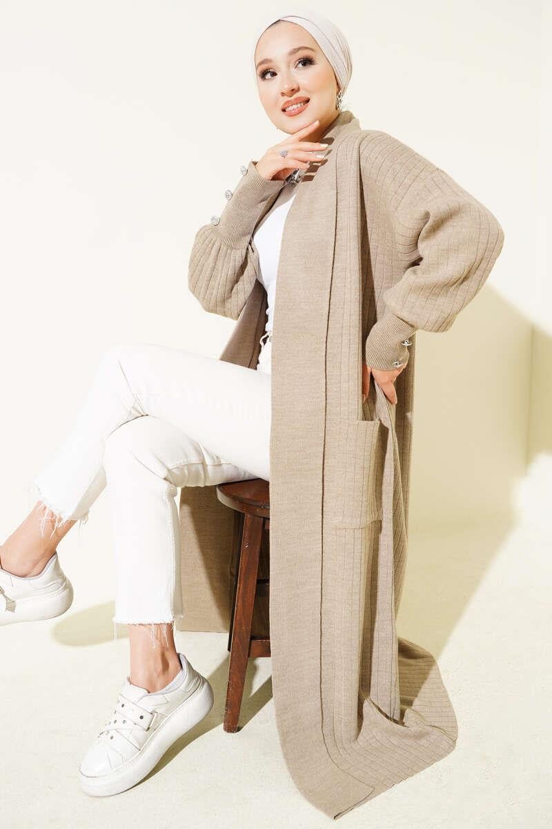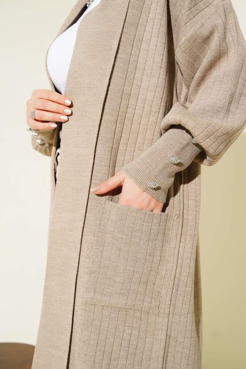 Shawl Collar Knitted Cardigan with Buttoned Sleeves and Mink (0875-7146-671538)