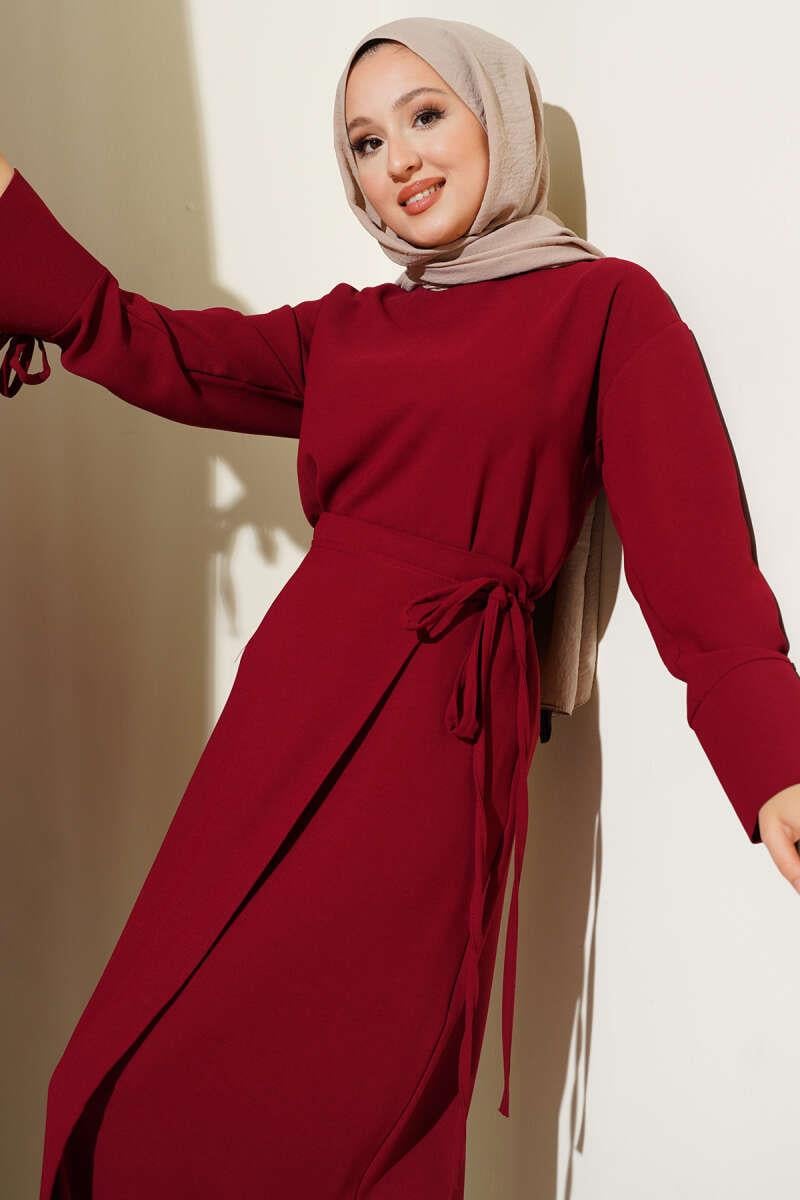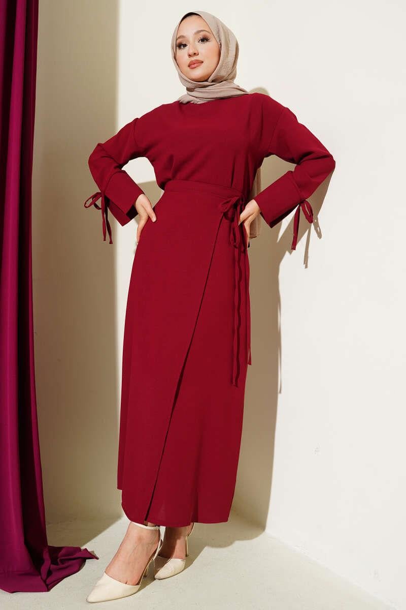 Burgundy 2 Piece Set with Sleeve Rope Detail and Skirt (8209-9000-674945)