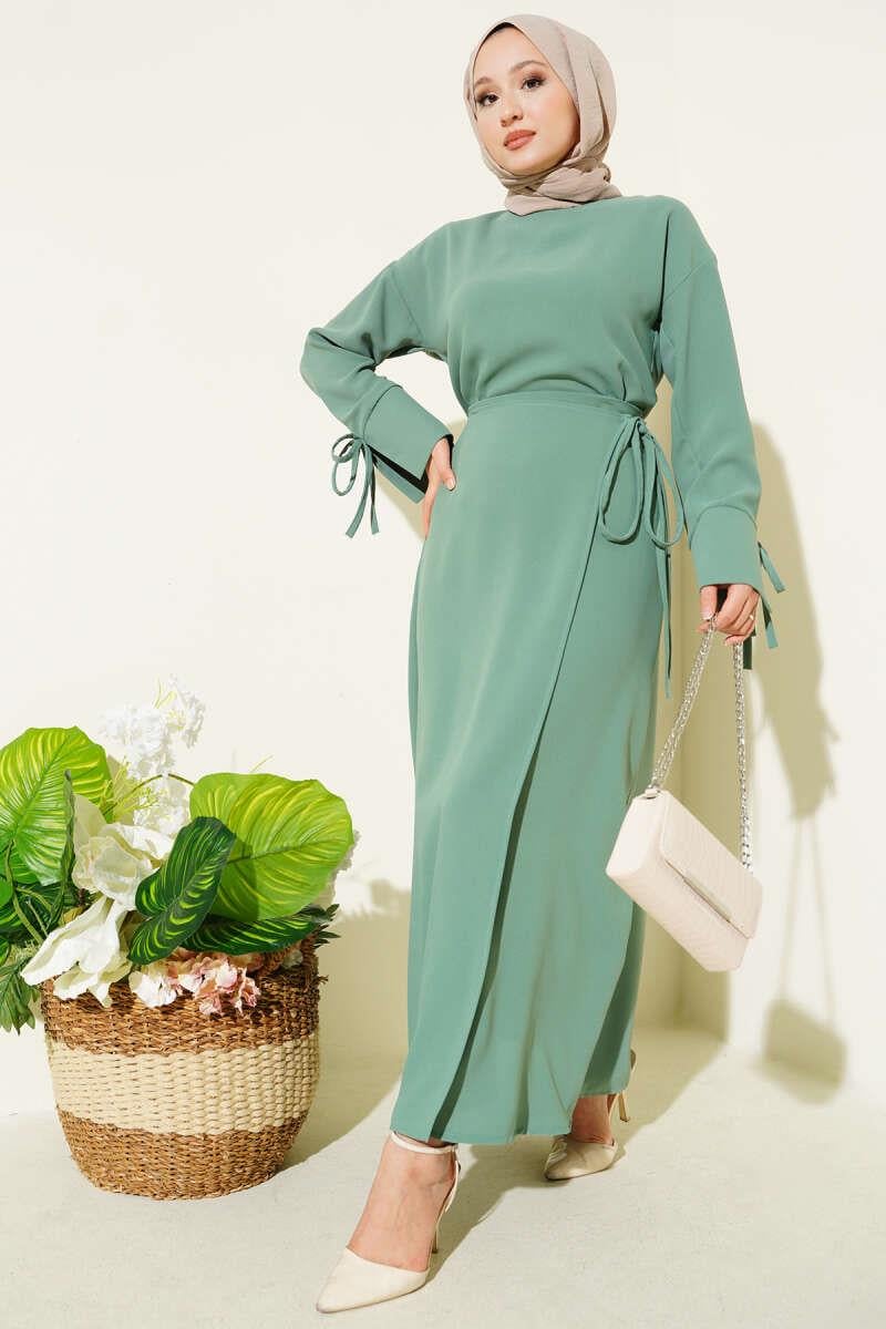 2 Piece Set with Rope Sleeve Detail and Skirt, Almond Green (8209-9000-674950)