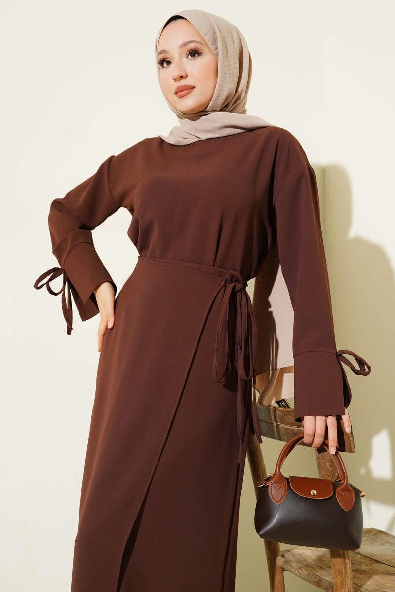 2 Piece Set with Skirt and Rope Detail on the Sleeves, Brown (8209-9000-674960)