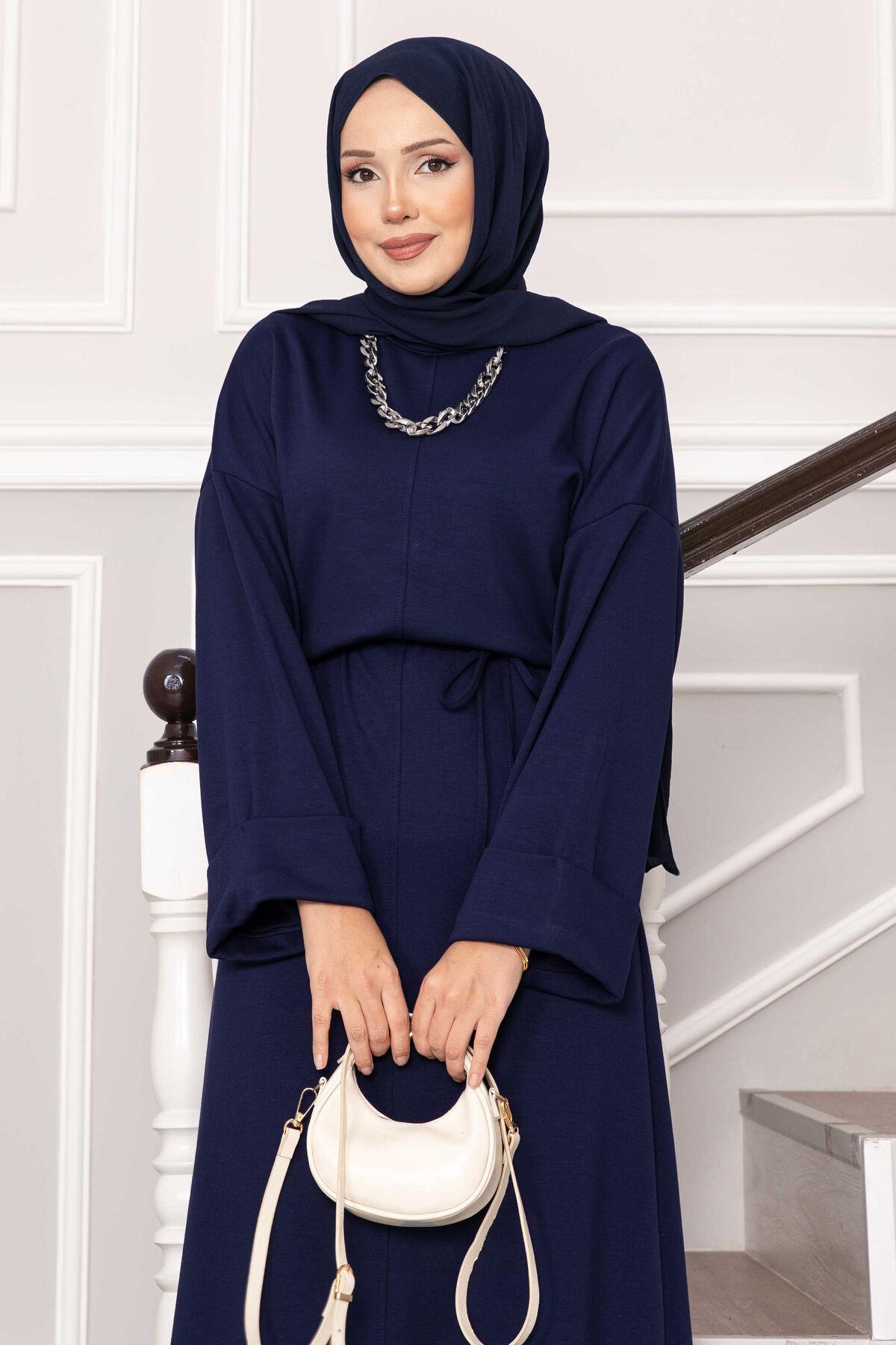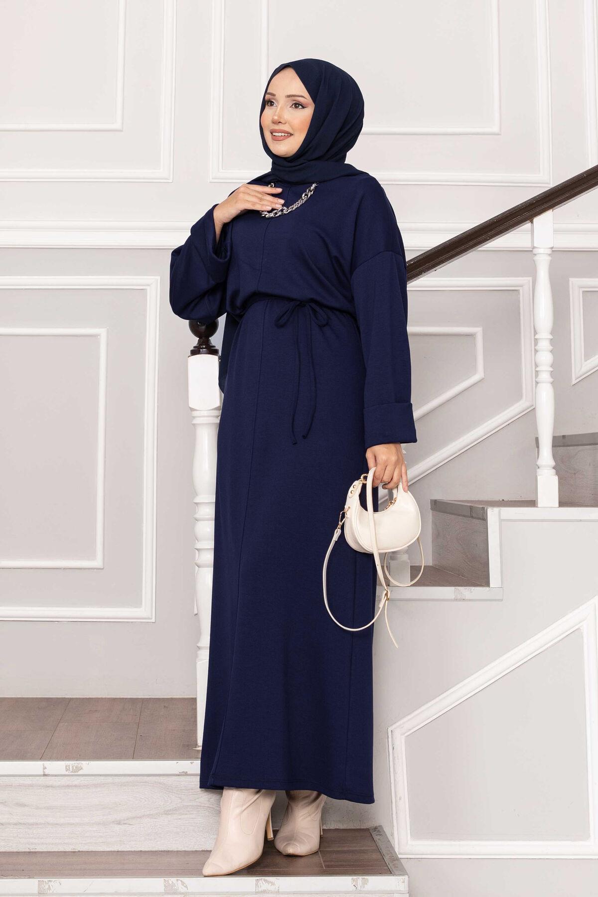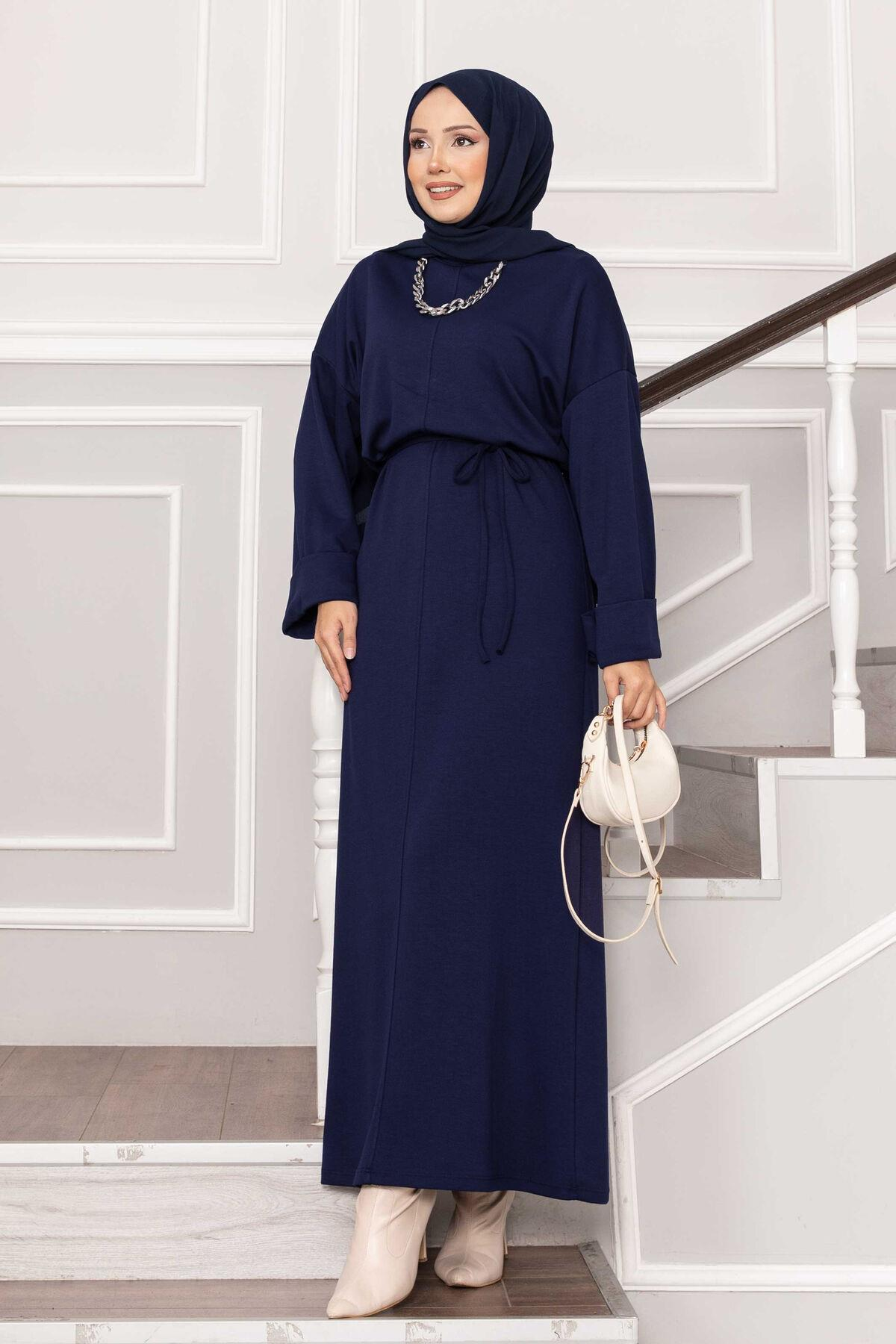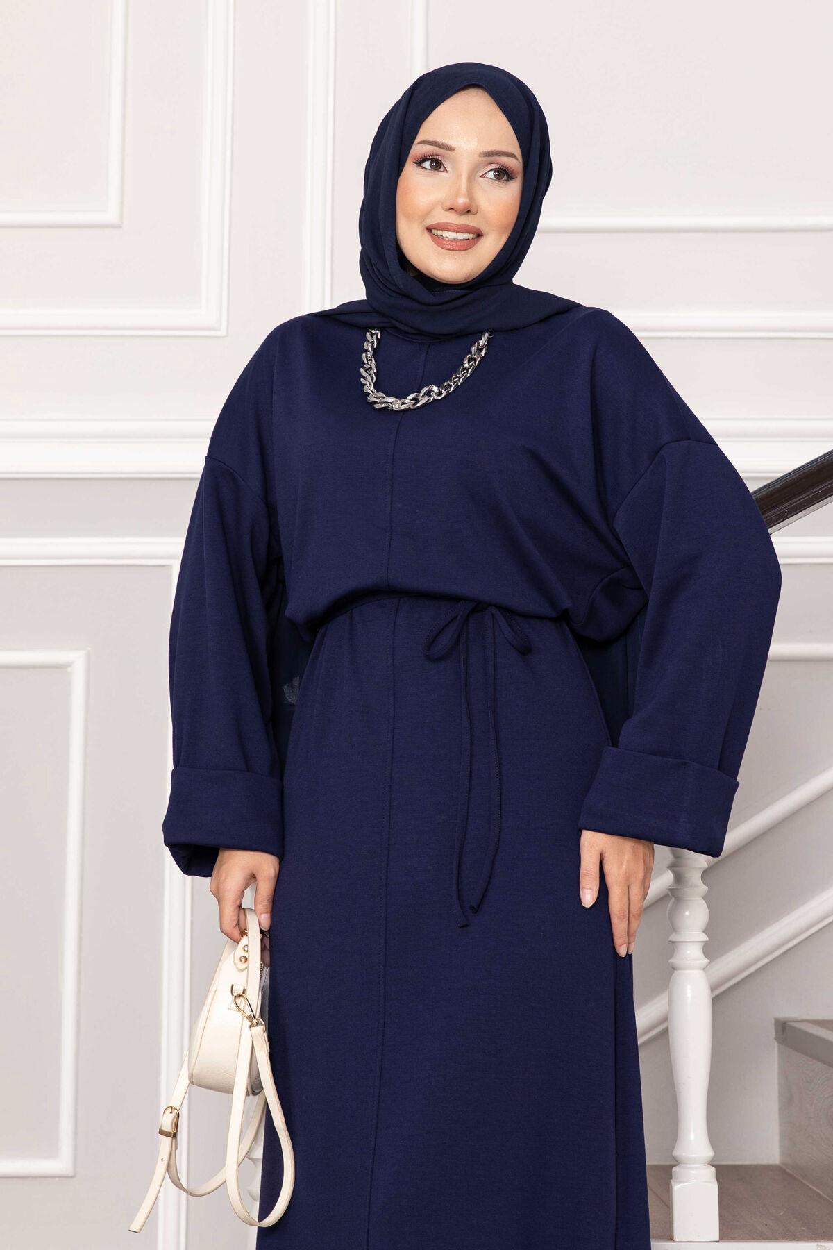 • The product is Autumn & Winter fashion. "Full length hijab dress with foldable sleeves and removable rope belt"