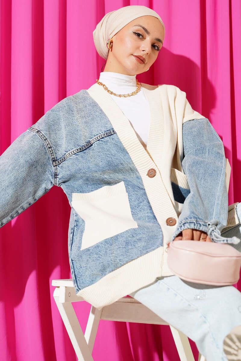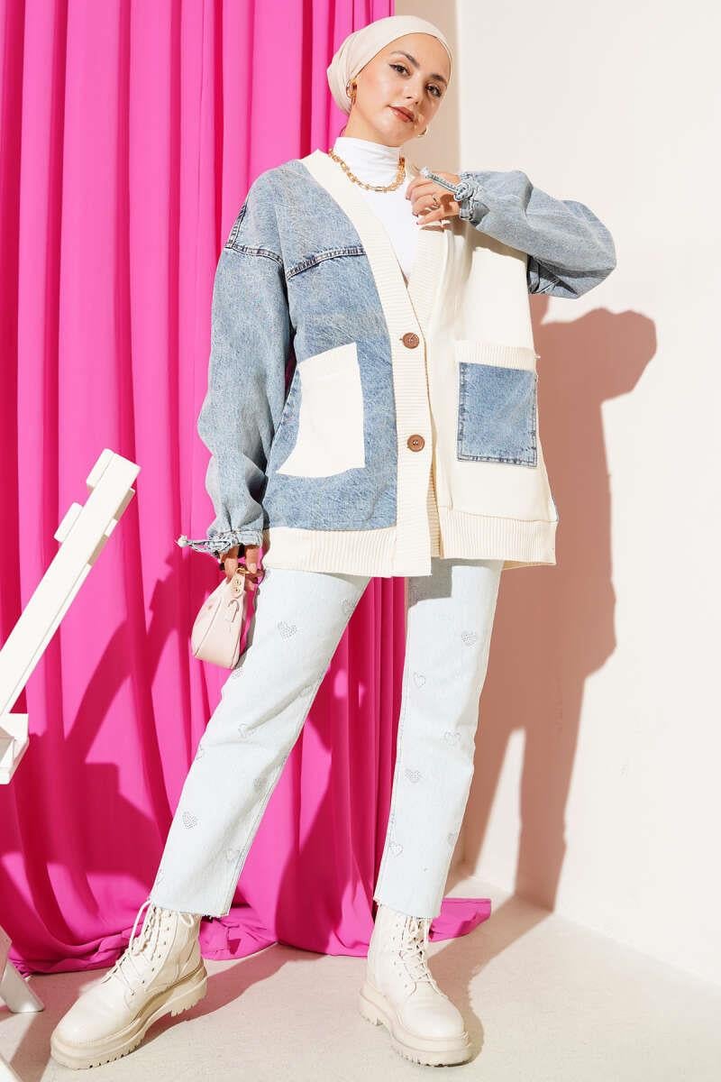 Denim Garnished Pocket Cardigan Denim Blue (8378-23701-674485)