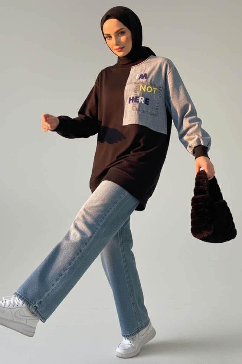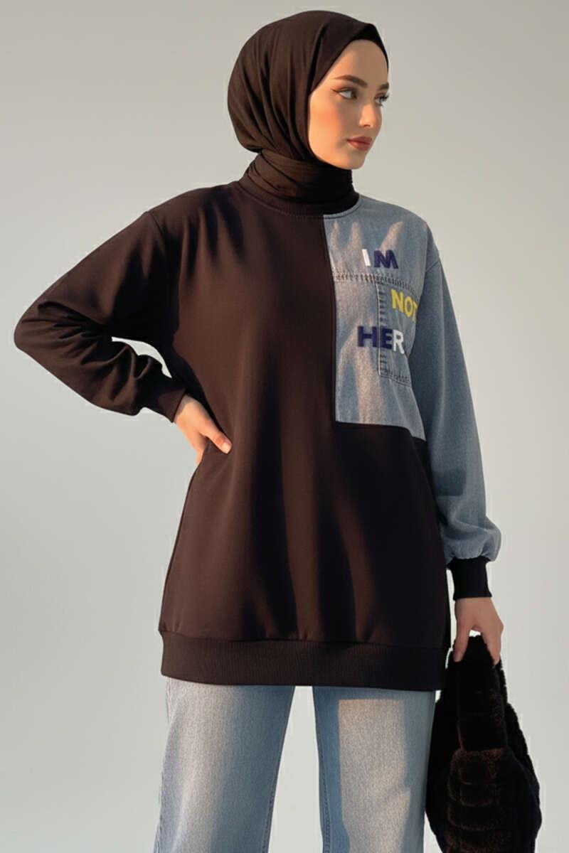 Denim Garnished Embroidered Detailed Tunic Black (0537-4499-679834)