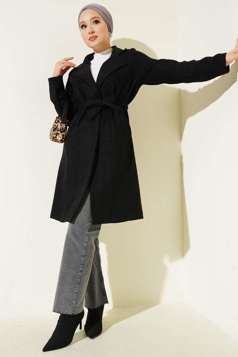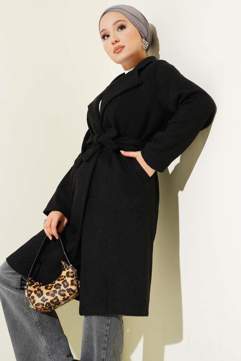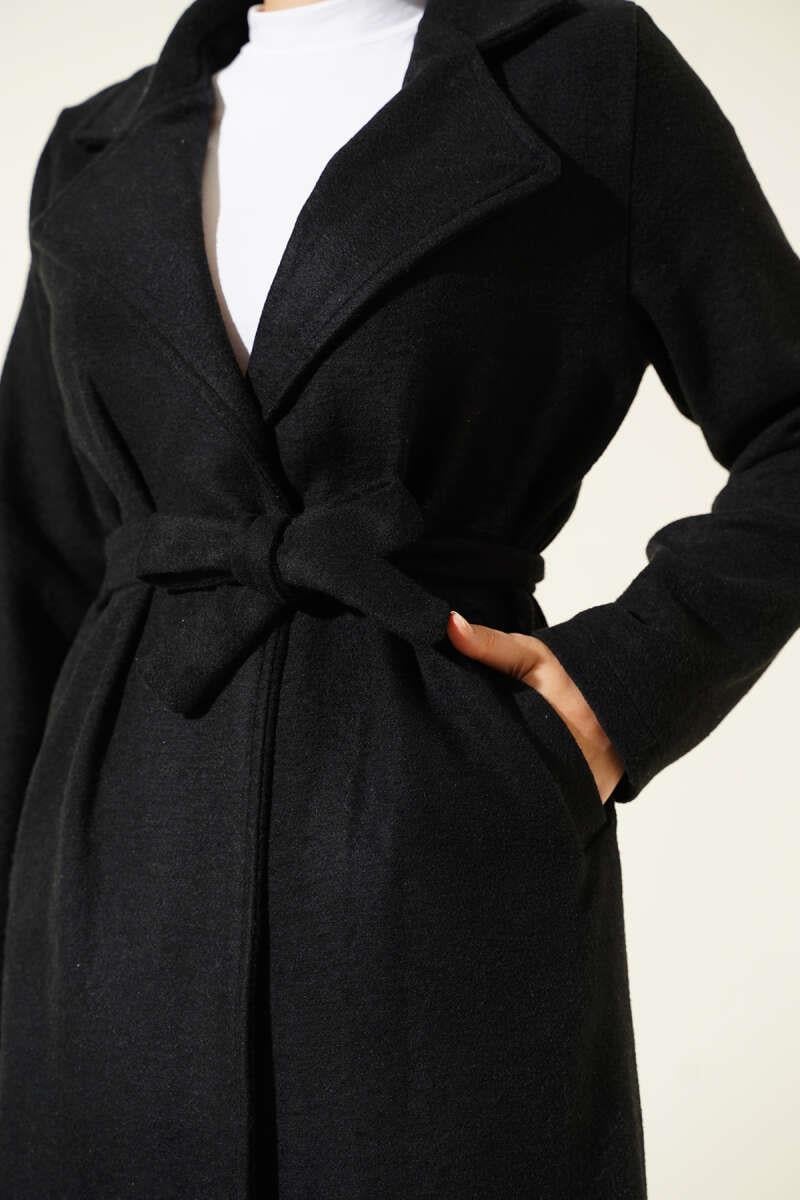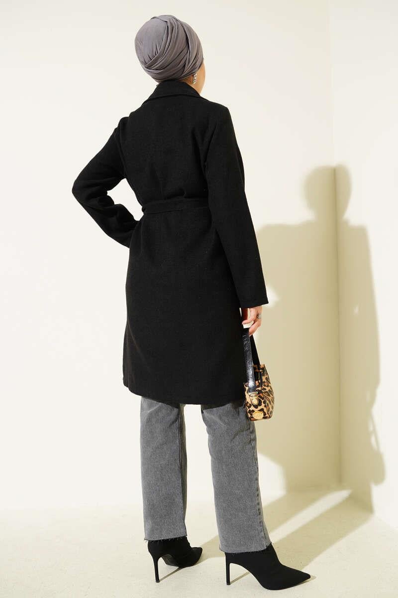 Double-Breasted Waist Belted Coat Black (0428-3066-677059)