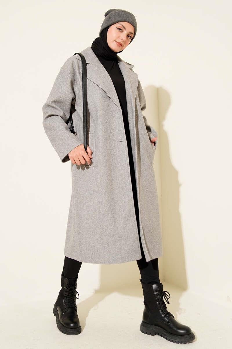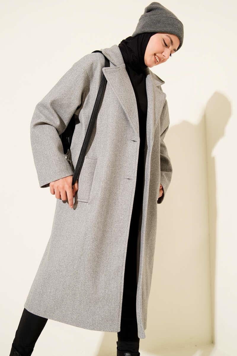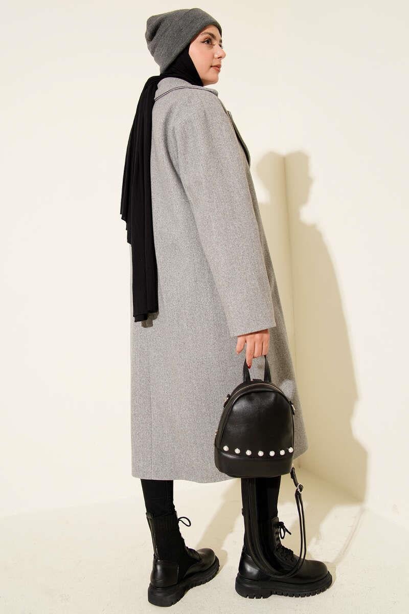 Double-Breasted Two-Button Detailed Cashmere Coat in Gray (0569-3213-10-677199)