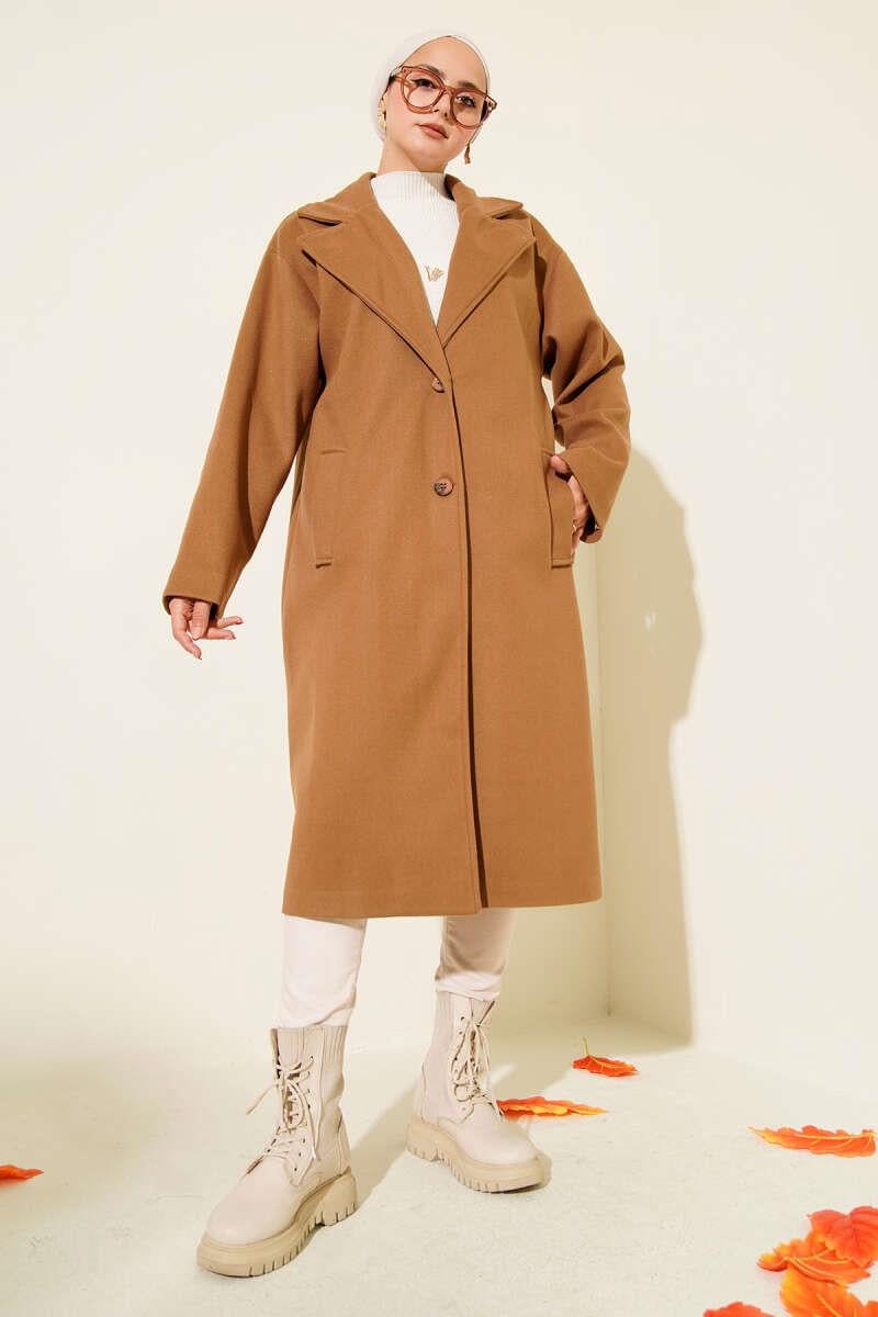 Double-breasted Two-Button Detailed Cashmere Coat in Tan (0569-3213-10-677219)