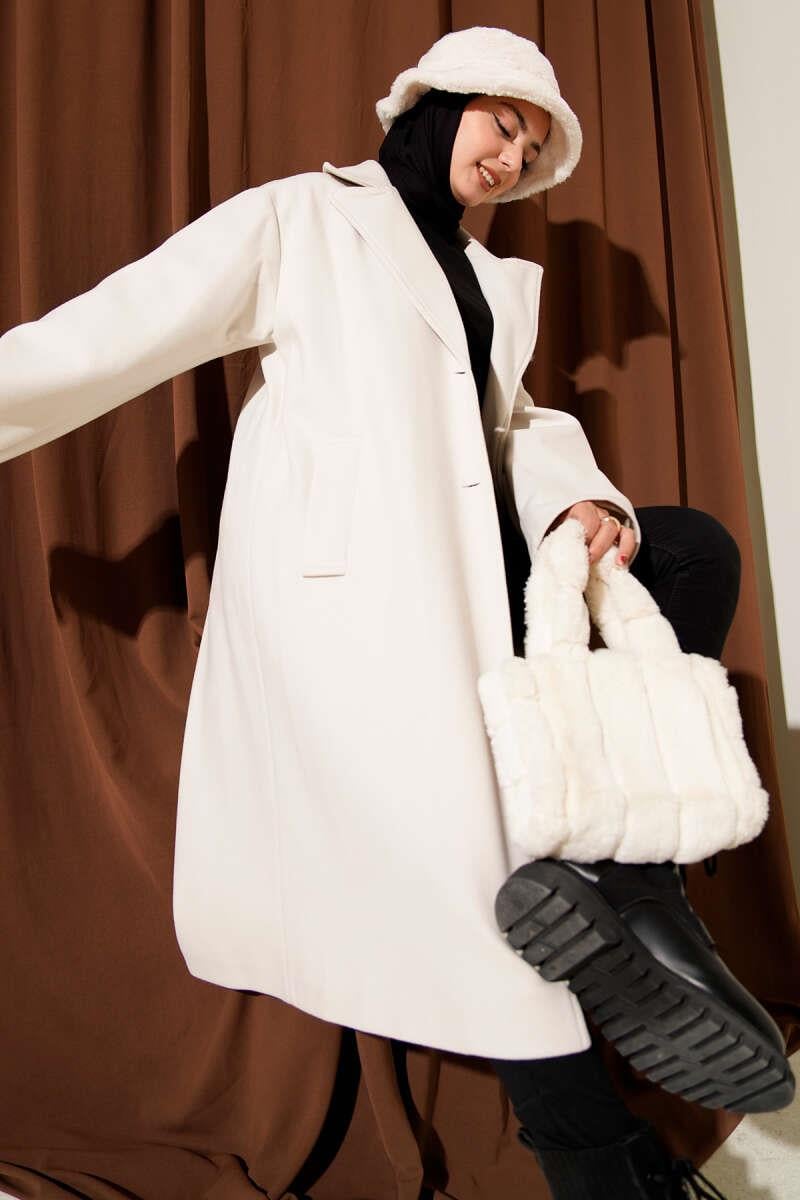 Double-breasted Two-Button Detailed Cashmere Coat with Stone (0569-3213-10-677224)