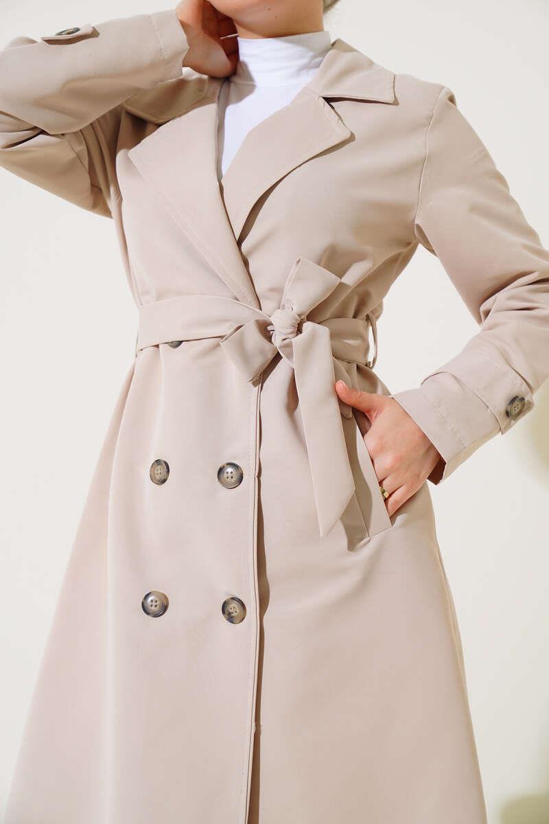 Double Breasted Belted Buttoned Trench Coat Stone (0569-3053-20-578467)