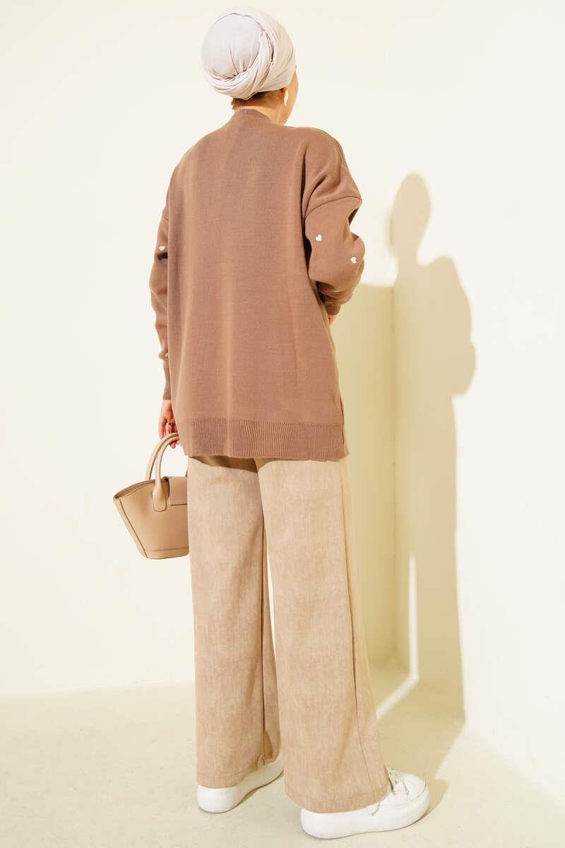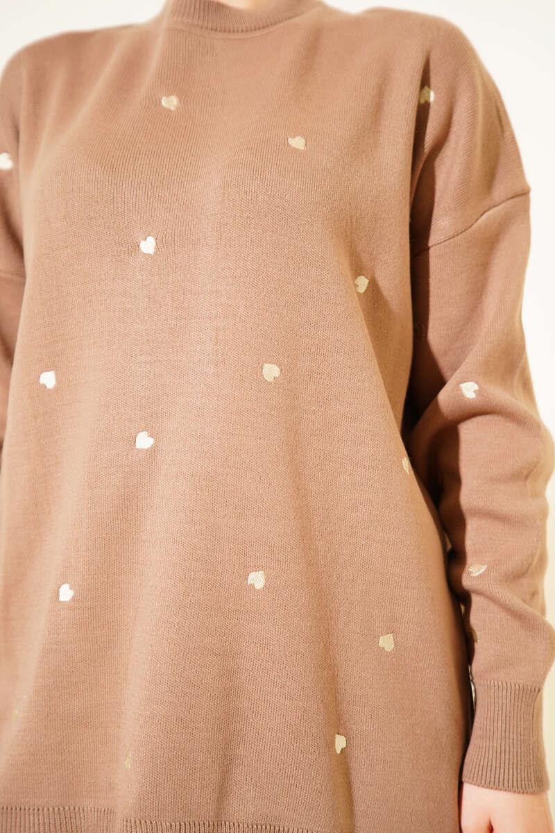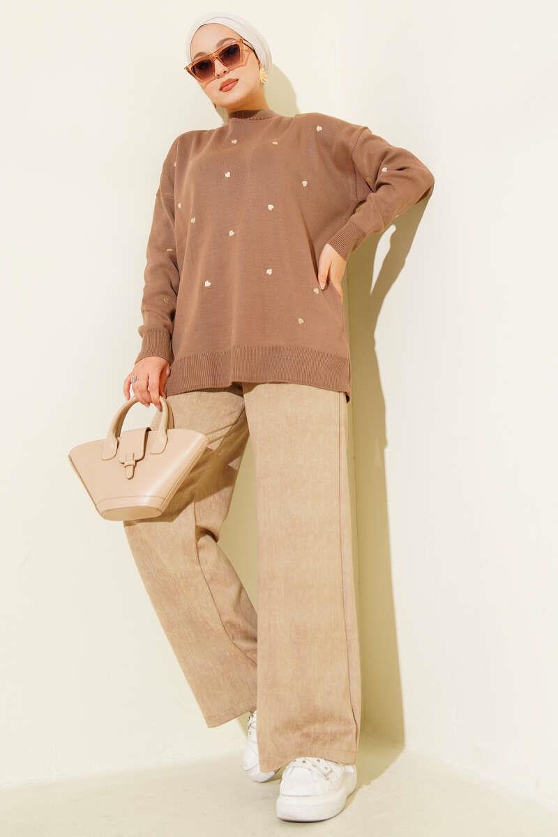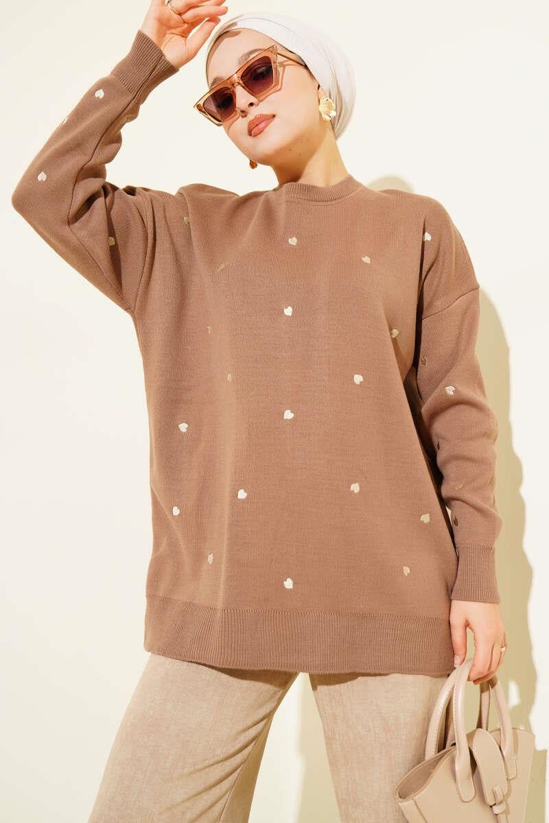 Small Heart Embroidered Knit Sweater Latte (6999-3253 -677025)