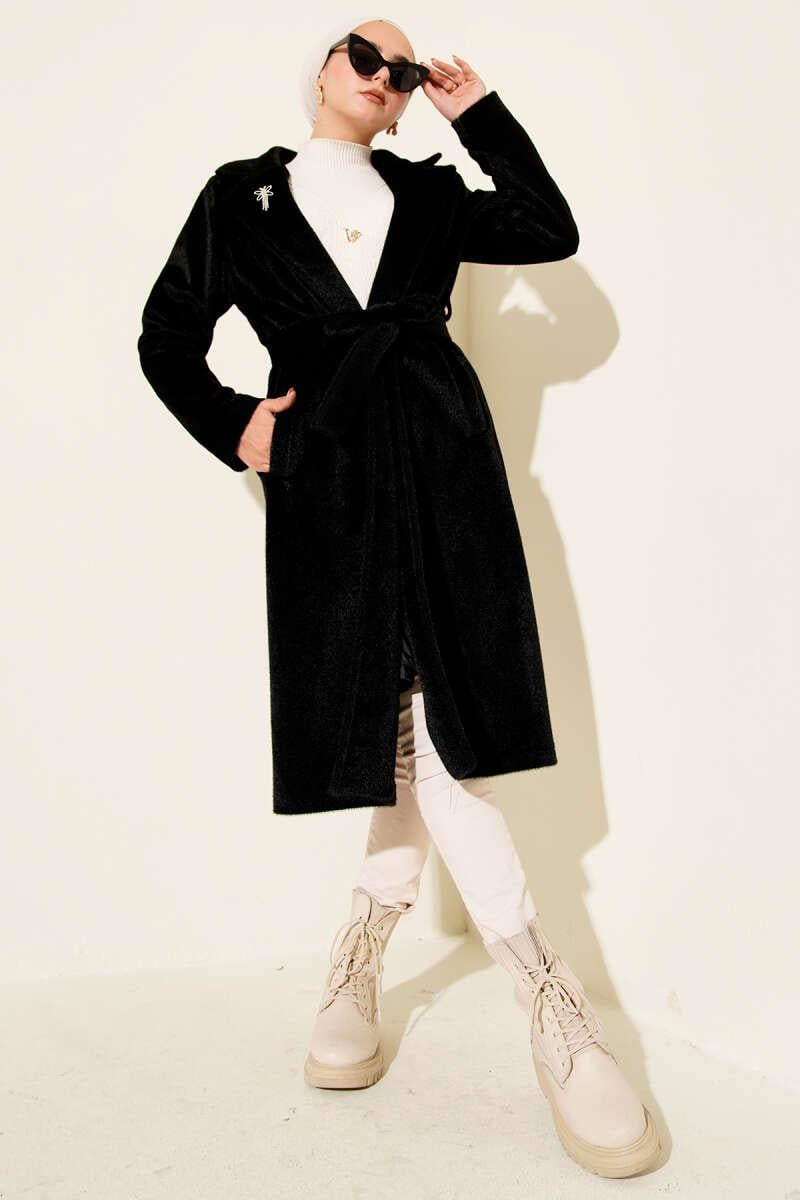 Belted Bronze Detailed Cashmere Coat Black (0569-2959-10-677418)