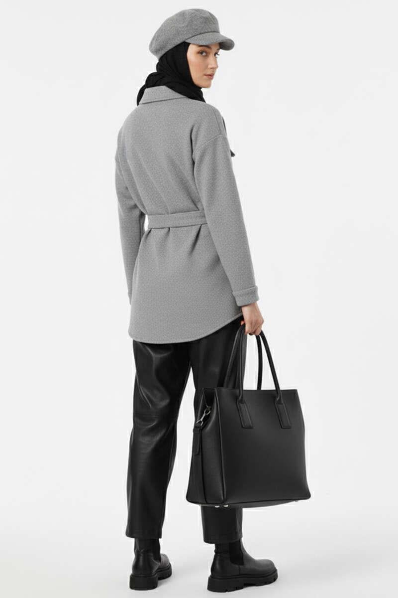 Belted Buttoned Cashmere Jacket Gray (0999-6447-673961)
