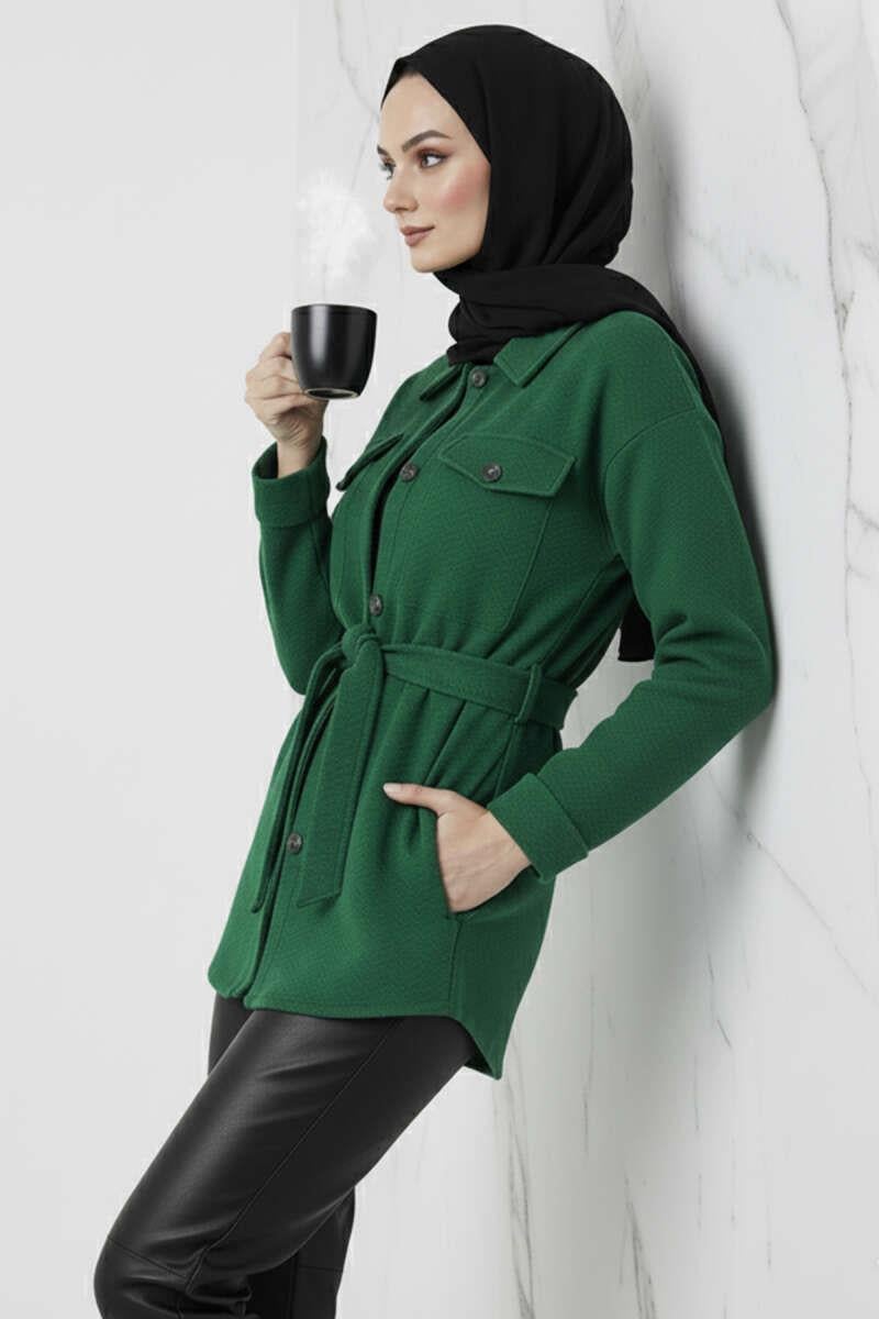 Belted Buttoned Cashmere Jacket Emerald (0999-6447-673996)
