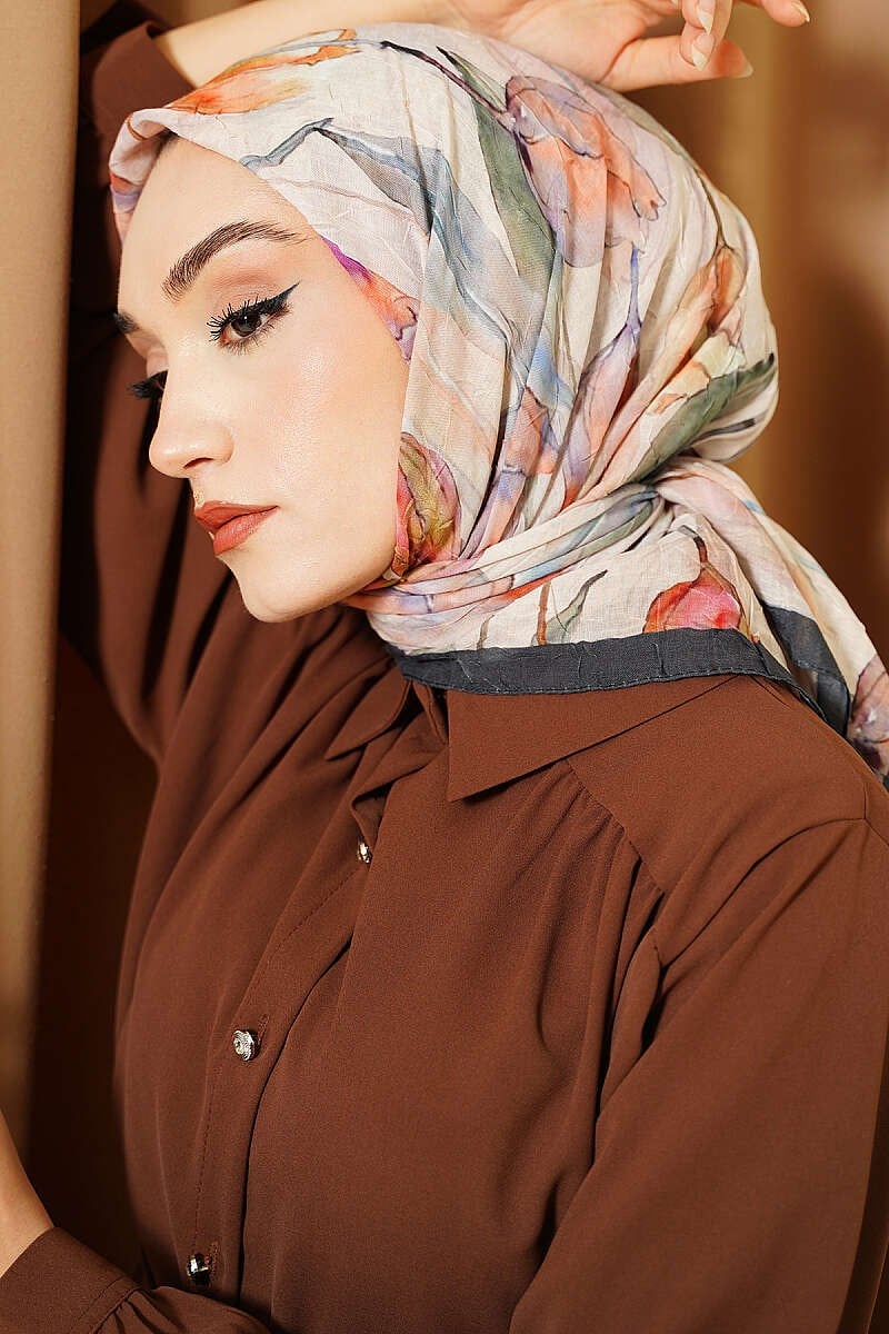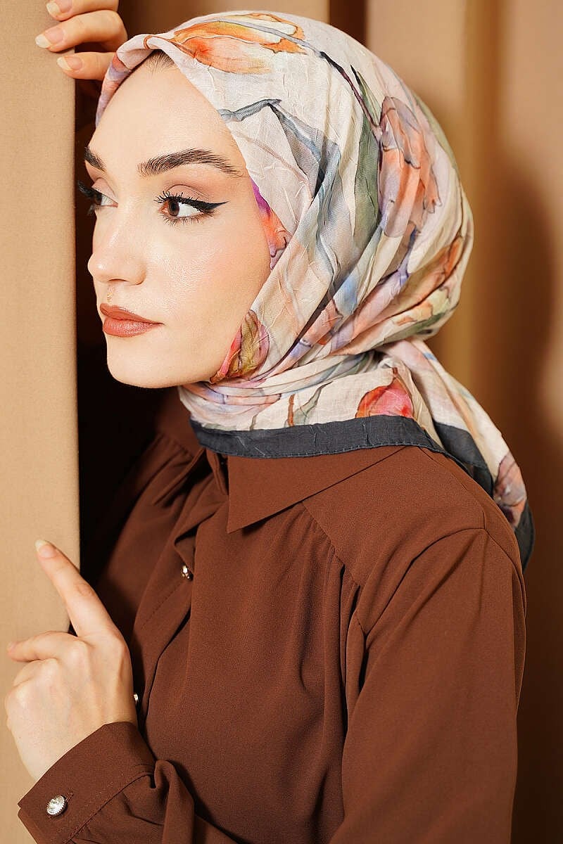Tulip Pattern Bamboo Crush Scarf Beige (0778-2456-750054)