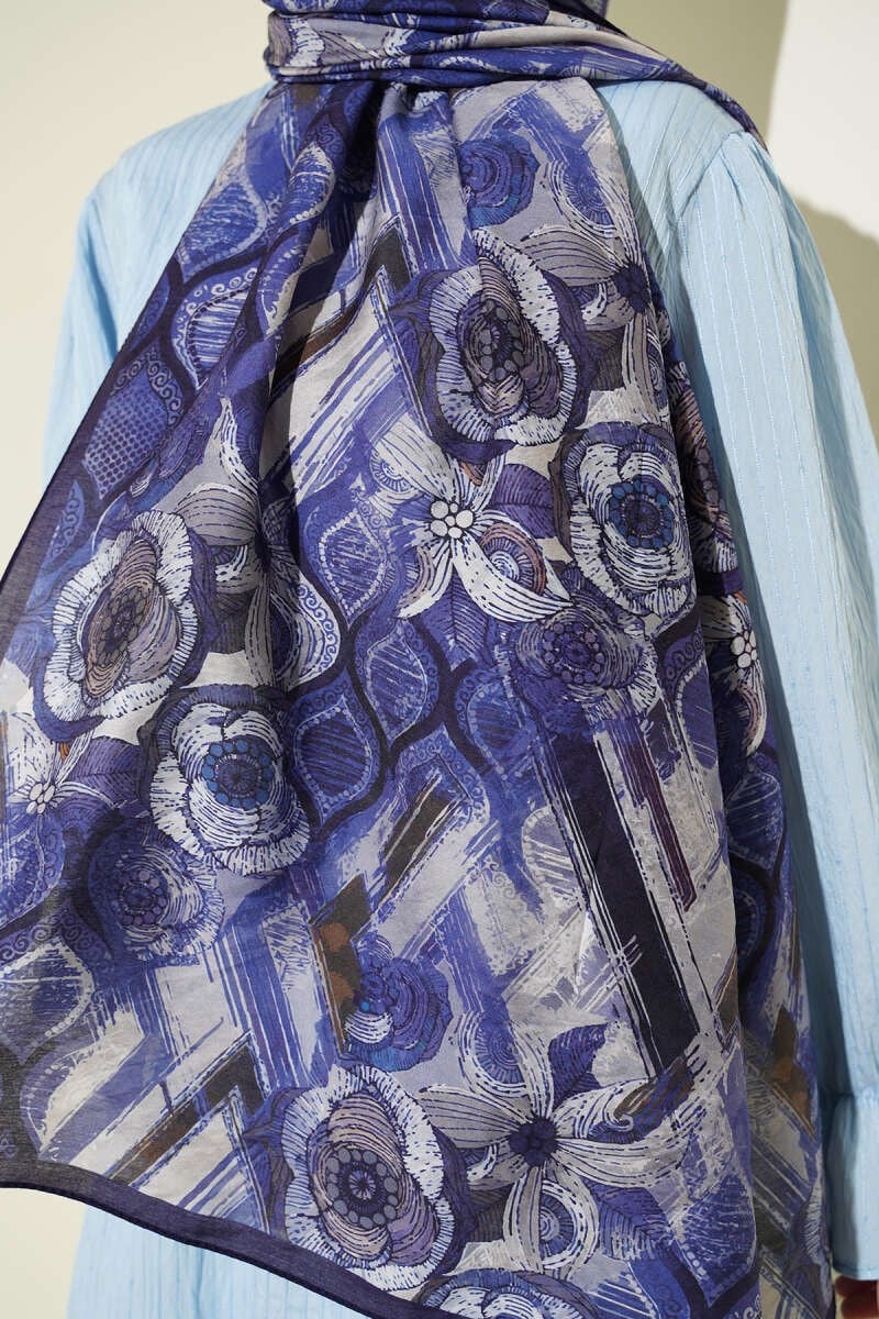 Lalezar Pattern Modal Scarf (Navy Blue) (0778-5141-739126)