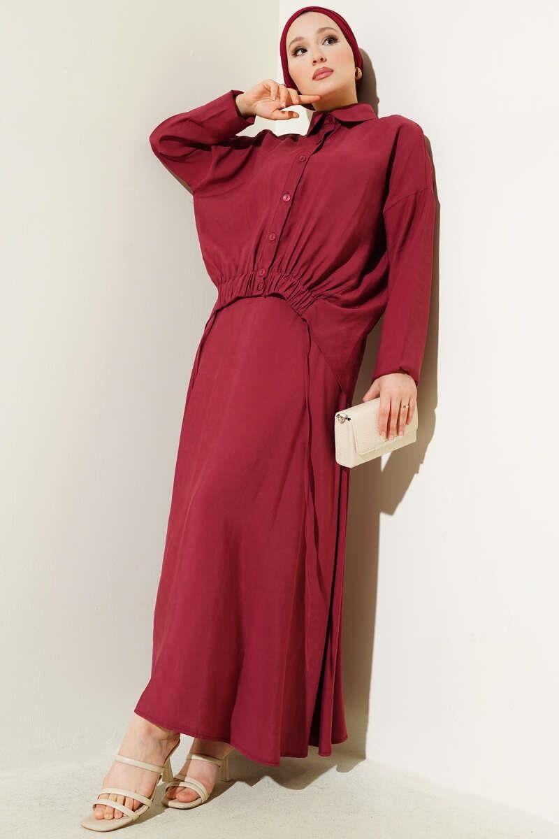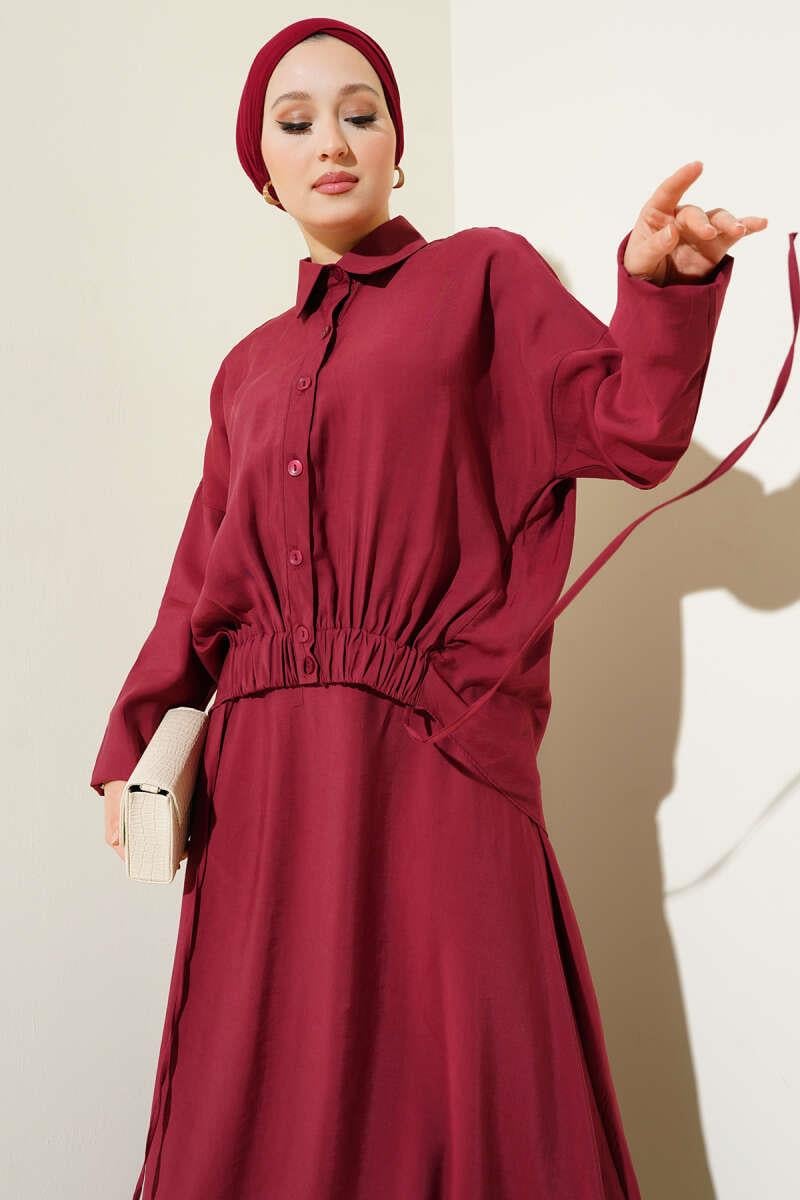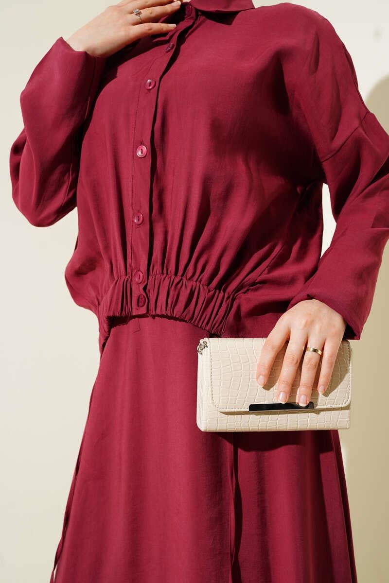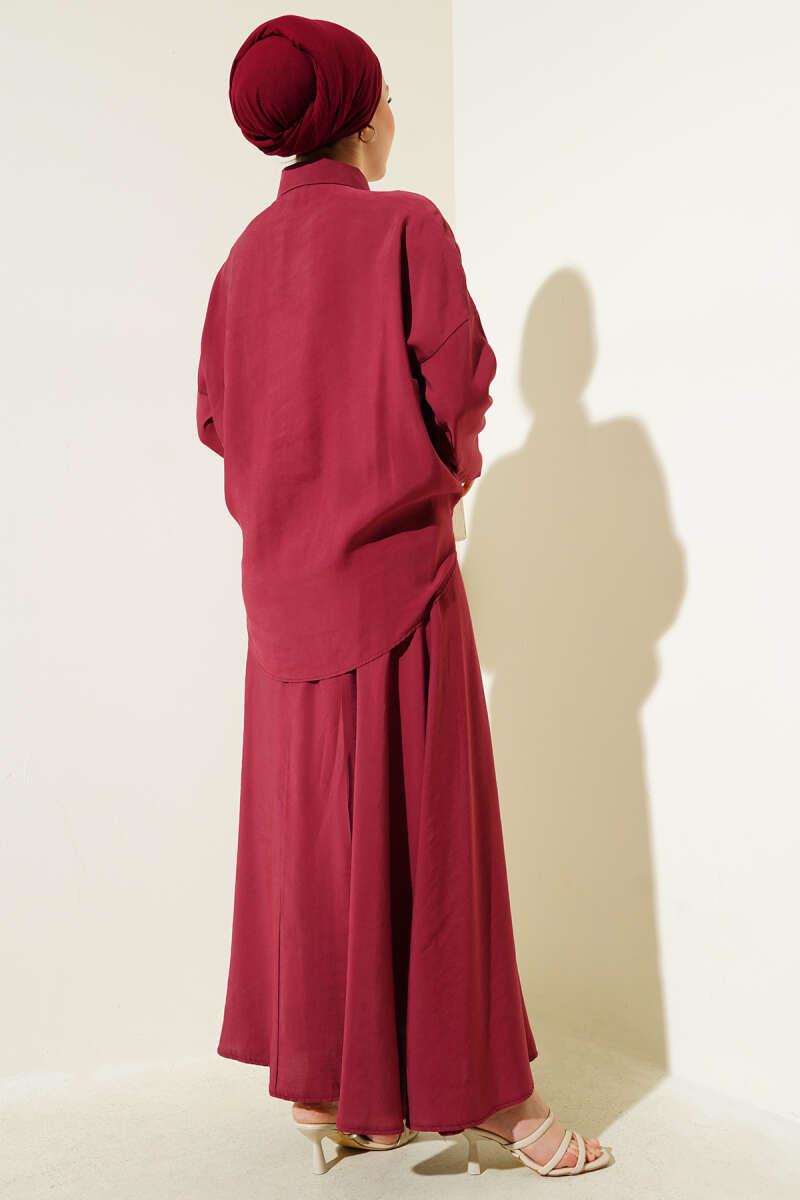 Two-Piece Burgundy Suit with Elastic Detailed Skirt (8091-3630-632754)