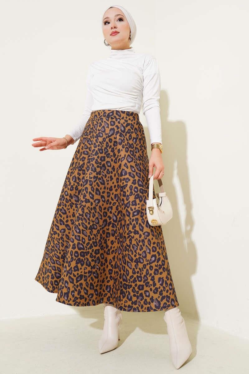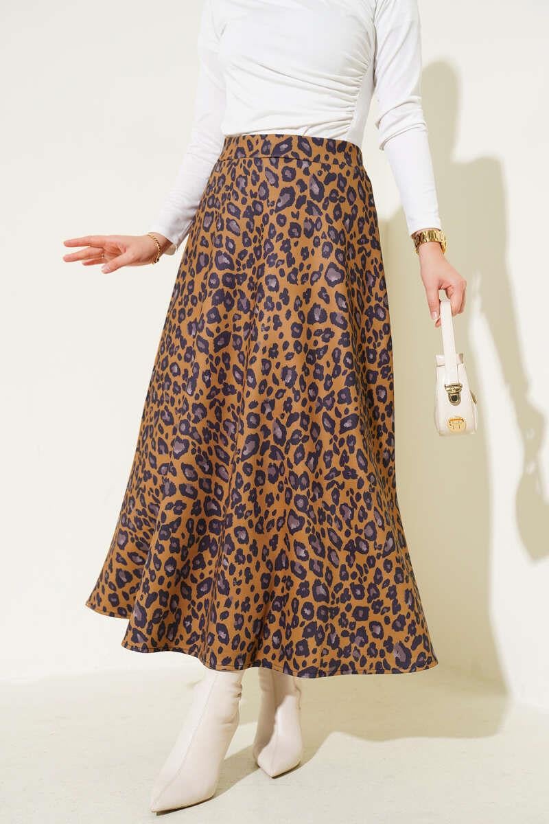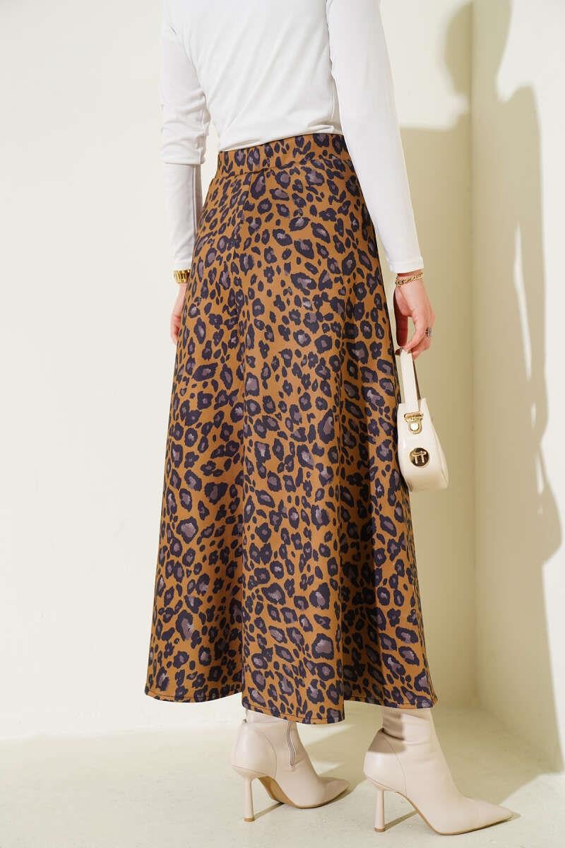 Leopard Pattern Scuba Skirt Tan (0319-1332-675935)